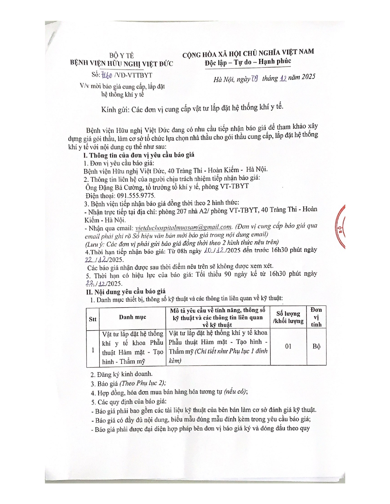Bảng giá dịch vụ kỹ thuật Y tế áp dụng tại Bệnh viện Hữu nghị Việt Đức (Ban hành kèm theo Quyết định số: 2458 /QĐ-BYT ngày 16 /7/2012)