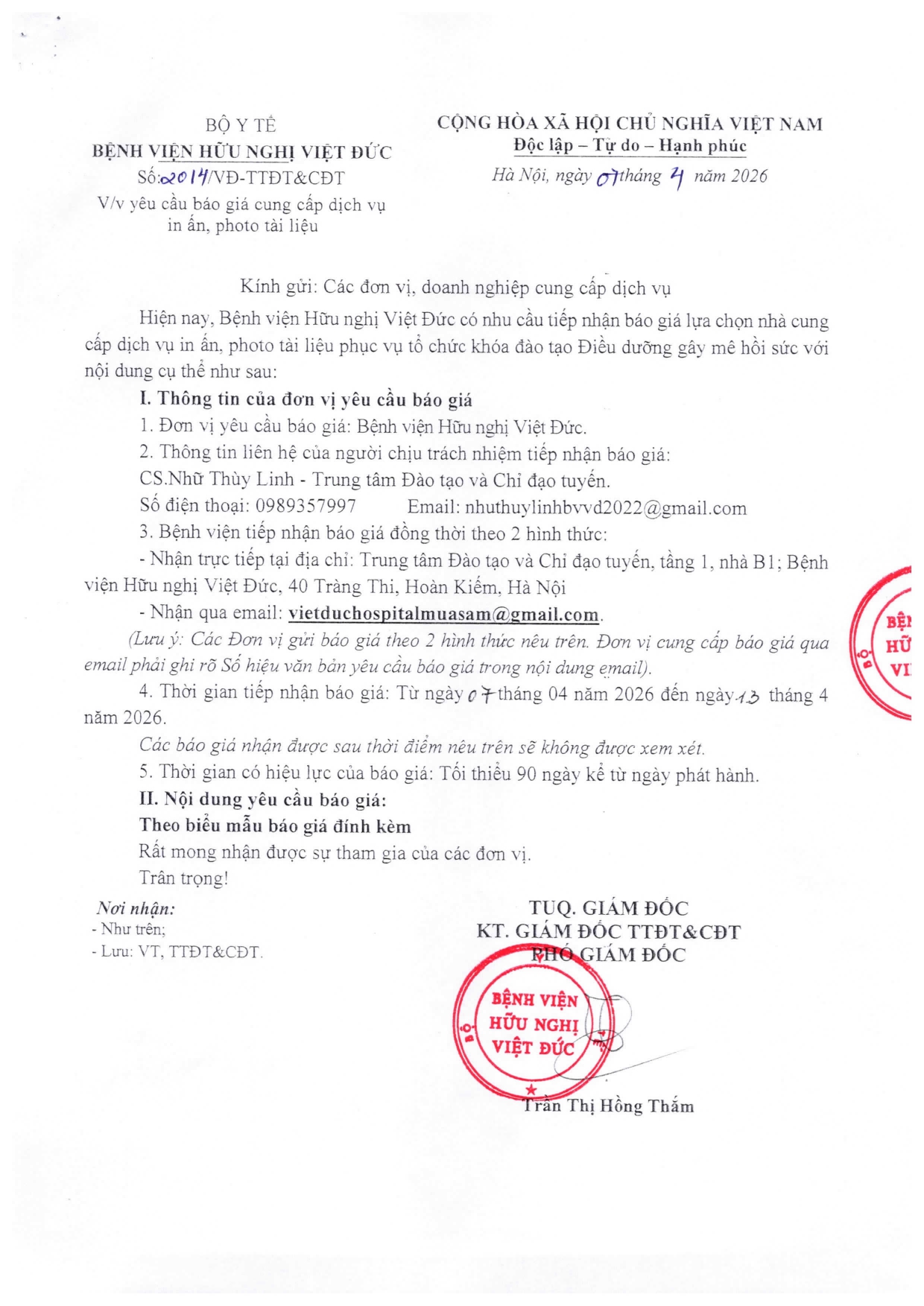 Địa điểm: Phòng khám số 07, Tầng 2, nhà C4, Khu Khám bệnh theo yêu cầu Bệnh viện Hữu nghị Việt Đức