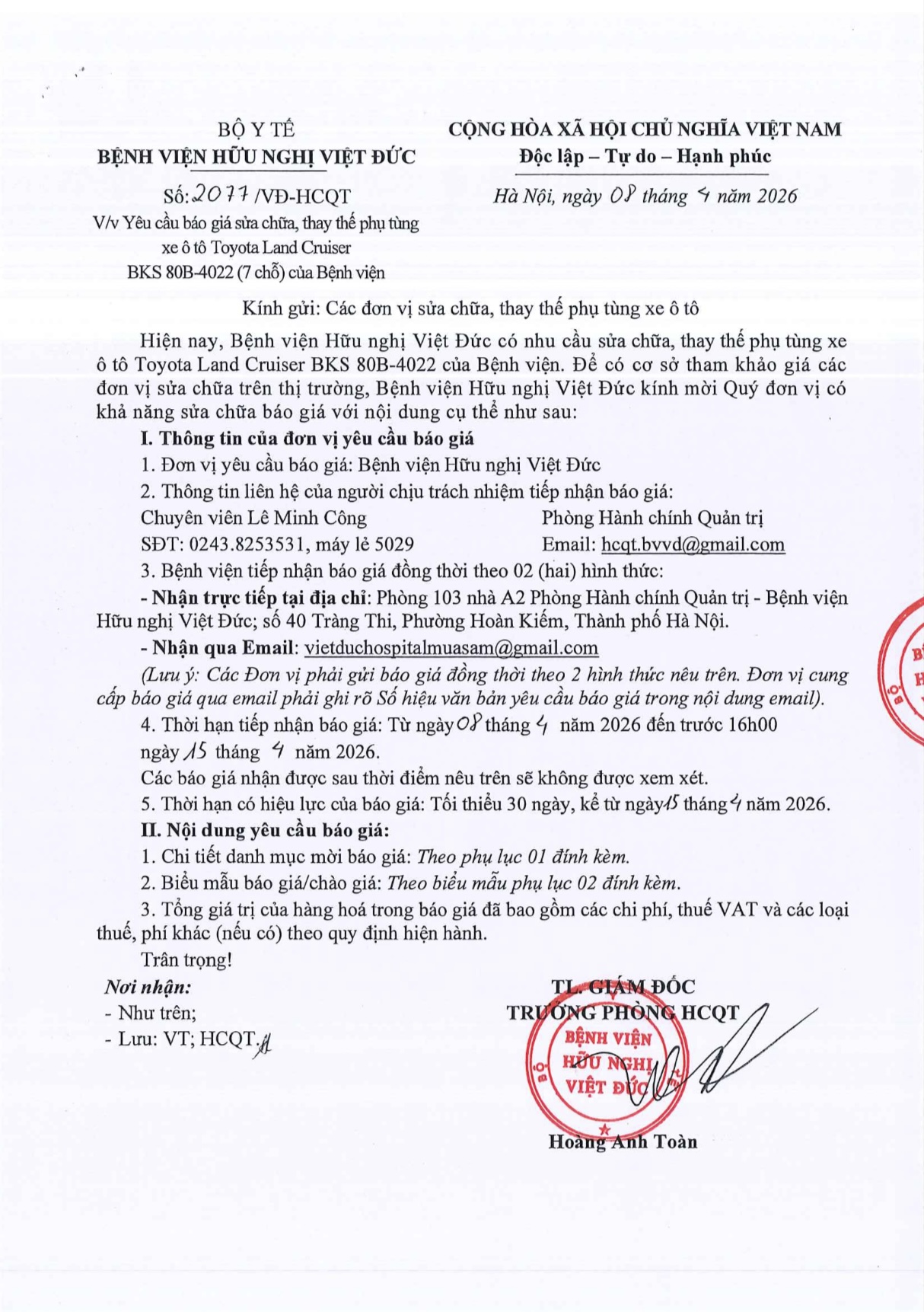 Hồ sơ gửi về: Nguyễn Hải Linh hoặc Phan Việt Dũng, phòng Tài chính kế toán, Bệnh viện HN Việt Đức, 40 Tràng Thi, Hoàn Kiếm, Hà Nội.