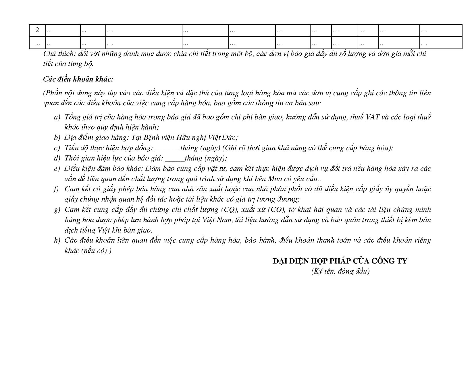 Bệnh viện HN Việt Đức mời chào giá trang thiết bị y tế