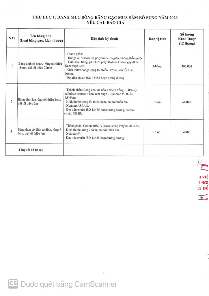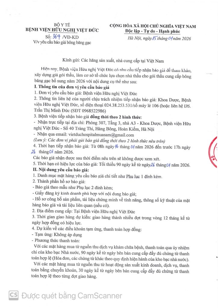 Bệnh viện HN Việt Đức yêu cầu báo giá bông băng gạc