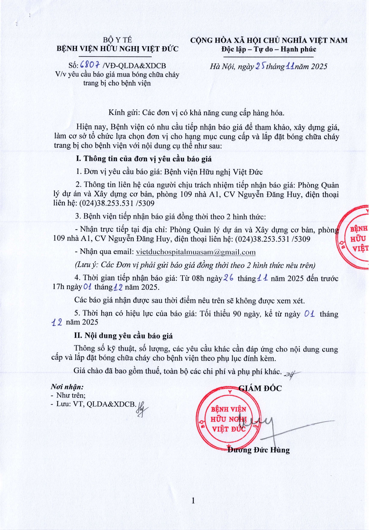 Hiện nay, Bệnh viện Hữu nghị Việt Đức đang có nhu cầu mua Gạc phẫu thuật ổ bụng năm 2023. Để có cơ sở thực hiện mua sắm, Bệnh viện Hữu nghị Việt Đức mời các đơn vị, doanh nghiệp có khả năng cung cấp chào giá, chi tiết theo công văn Yêu cầu báo giá được đăng tải này.