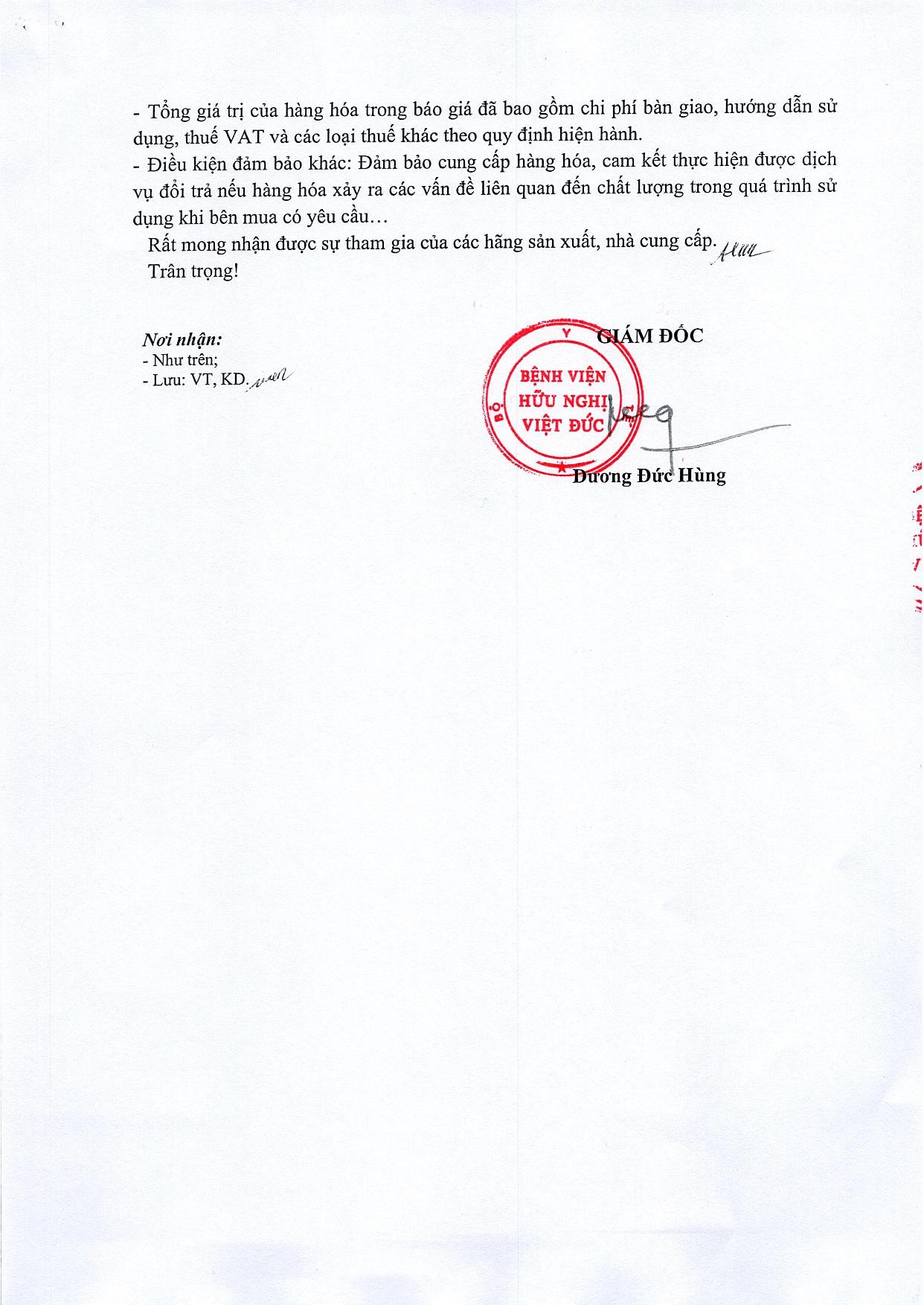Bệnh viện HN Việt Đức yêu cầu báo giá hóa chất, vật tư tiêu hao năm 2025