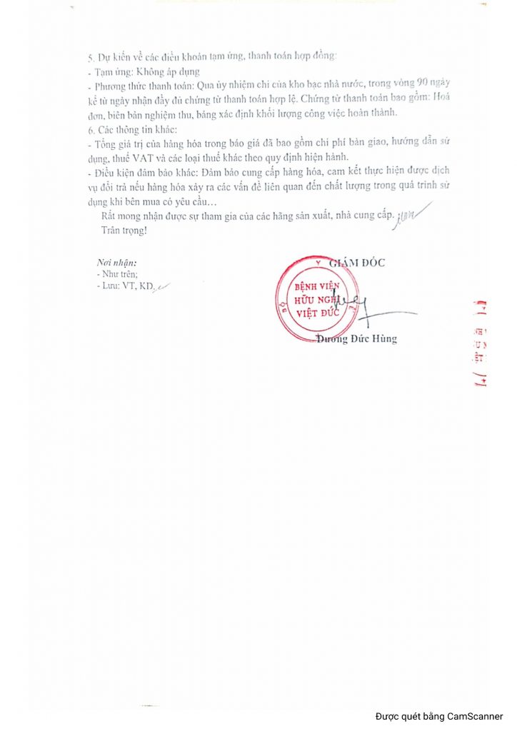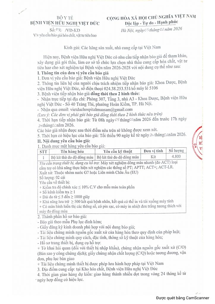 Bệnh viện HN Việt Đức yêu cầu báo giá hóa chất, vật tư tiêu hao