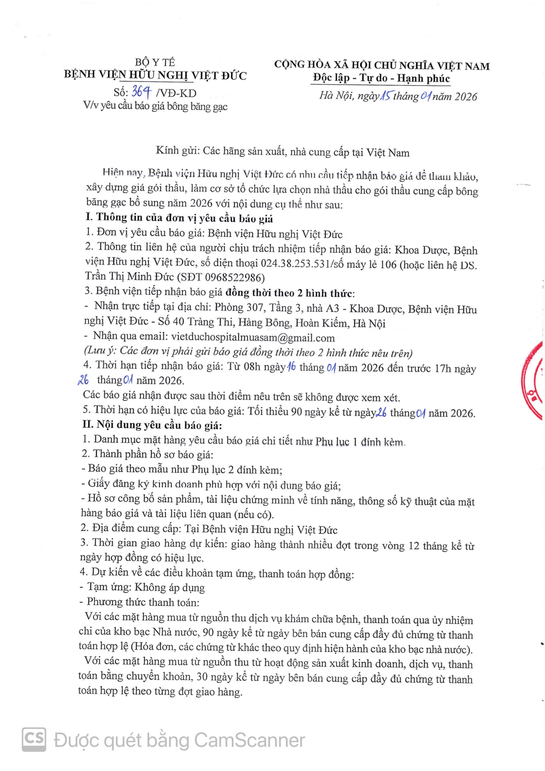 Bệnh viện Hữu nghị Việt Đức mời chào báo giá TTBYT