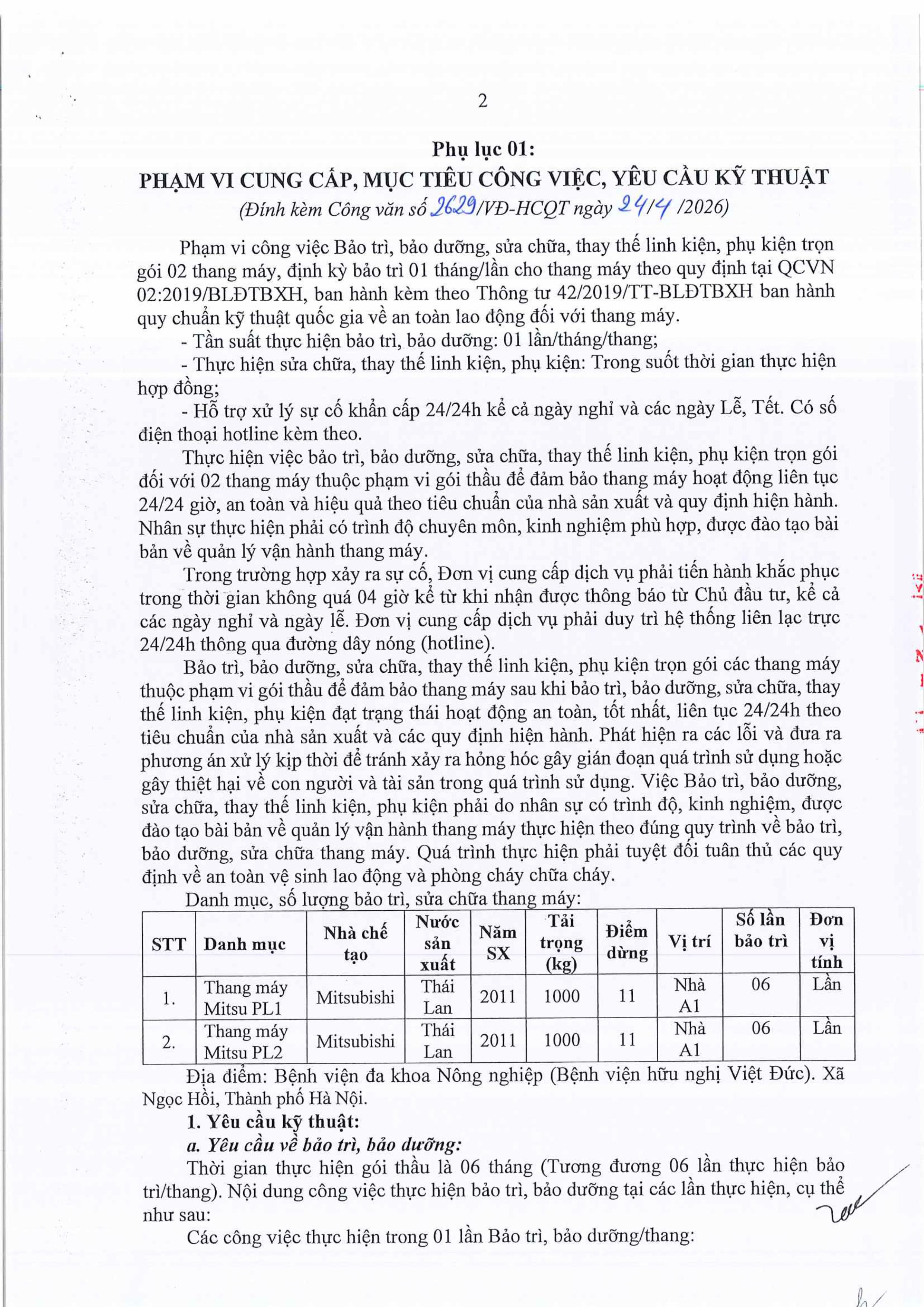 Bệnh viện Hữu nghị Việt Đức có nhu cầu báo giá bảo trì thang máy