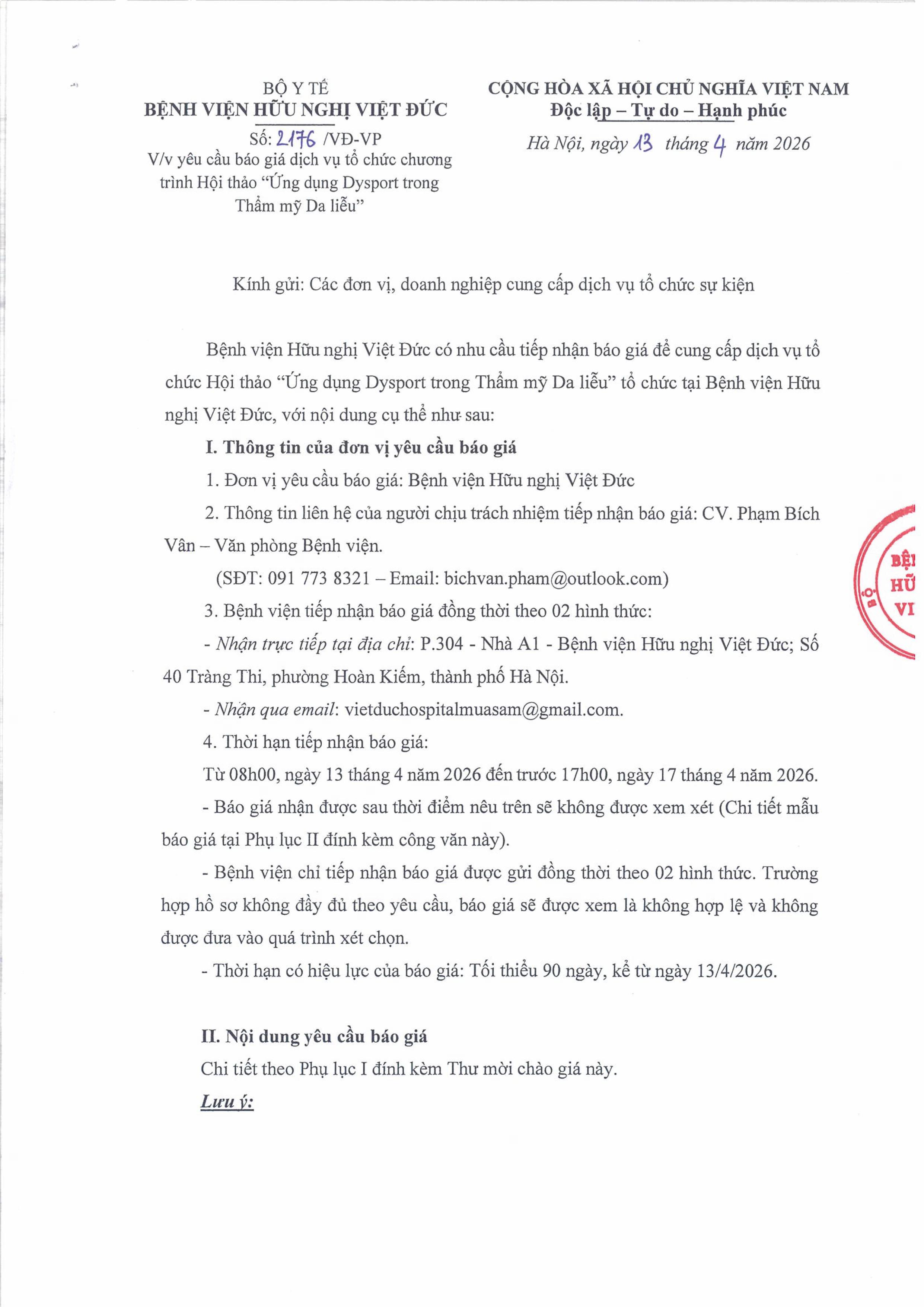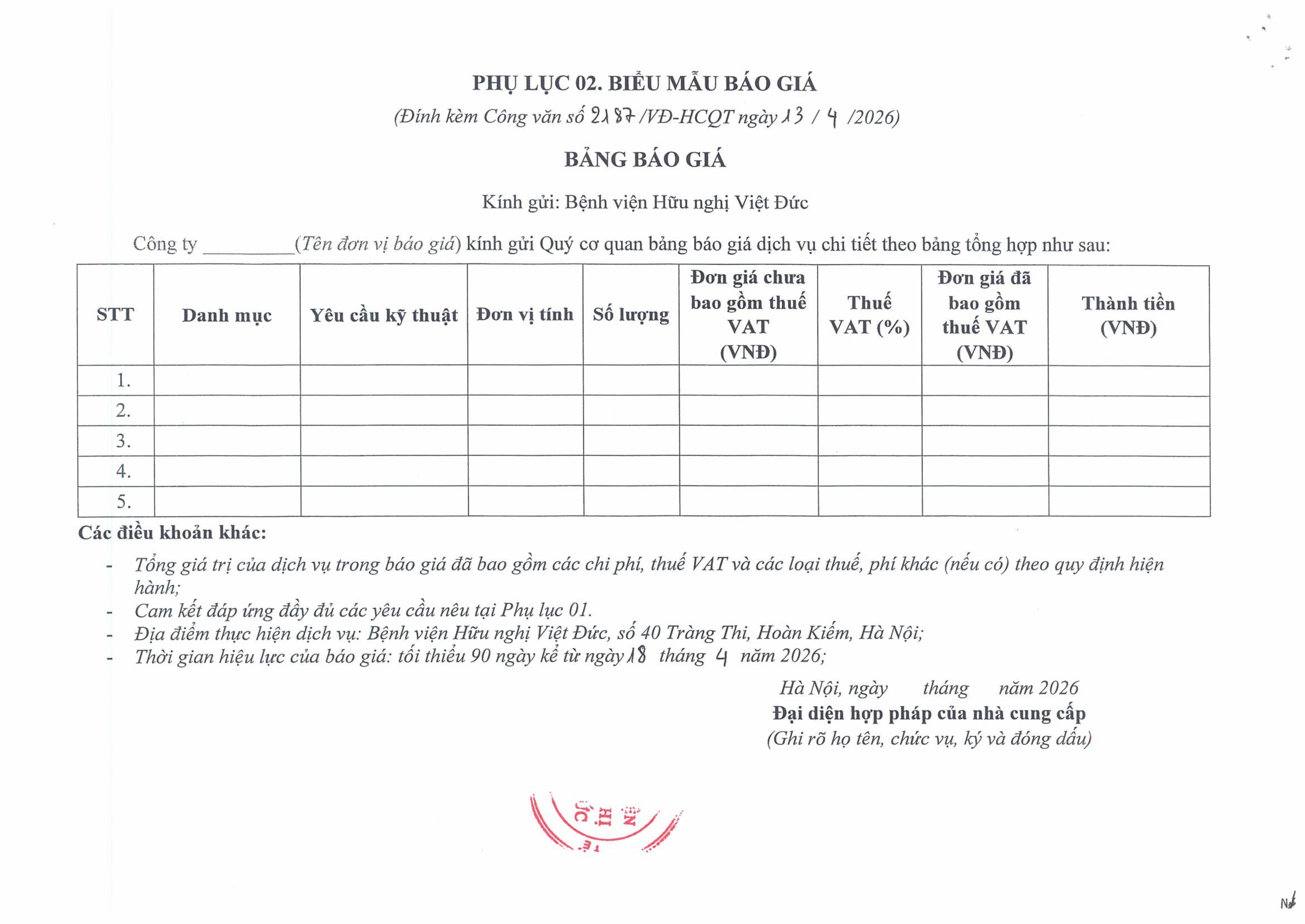Hiện nay, Bệnh viện Hữu nghị Việt Đức có nhu cầu kiểm tra hệ thống tiếp địa tủ điện, hệ thống tiếp địa chống sét. Để có cơ sở tham khảo giá dịch vụ kiểm tra hệ thống tiếp địa tủ điện, hệ thống tiếp địa chống sét trên thị trường, Bệnh viện Hữu nghị Việt Đức kính mời các đơn vị có khả năng cung cấp dịch vụ trên tham gia báo giá với nội dung cụ thể như sau: