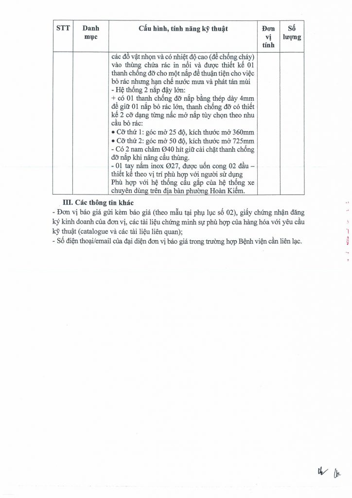 Bệnh viện Hữu nghị Việt Đức có nhu cầu báo giá trang bị dụng cụ thu chứa chất thải sinh hoạt