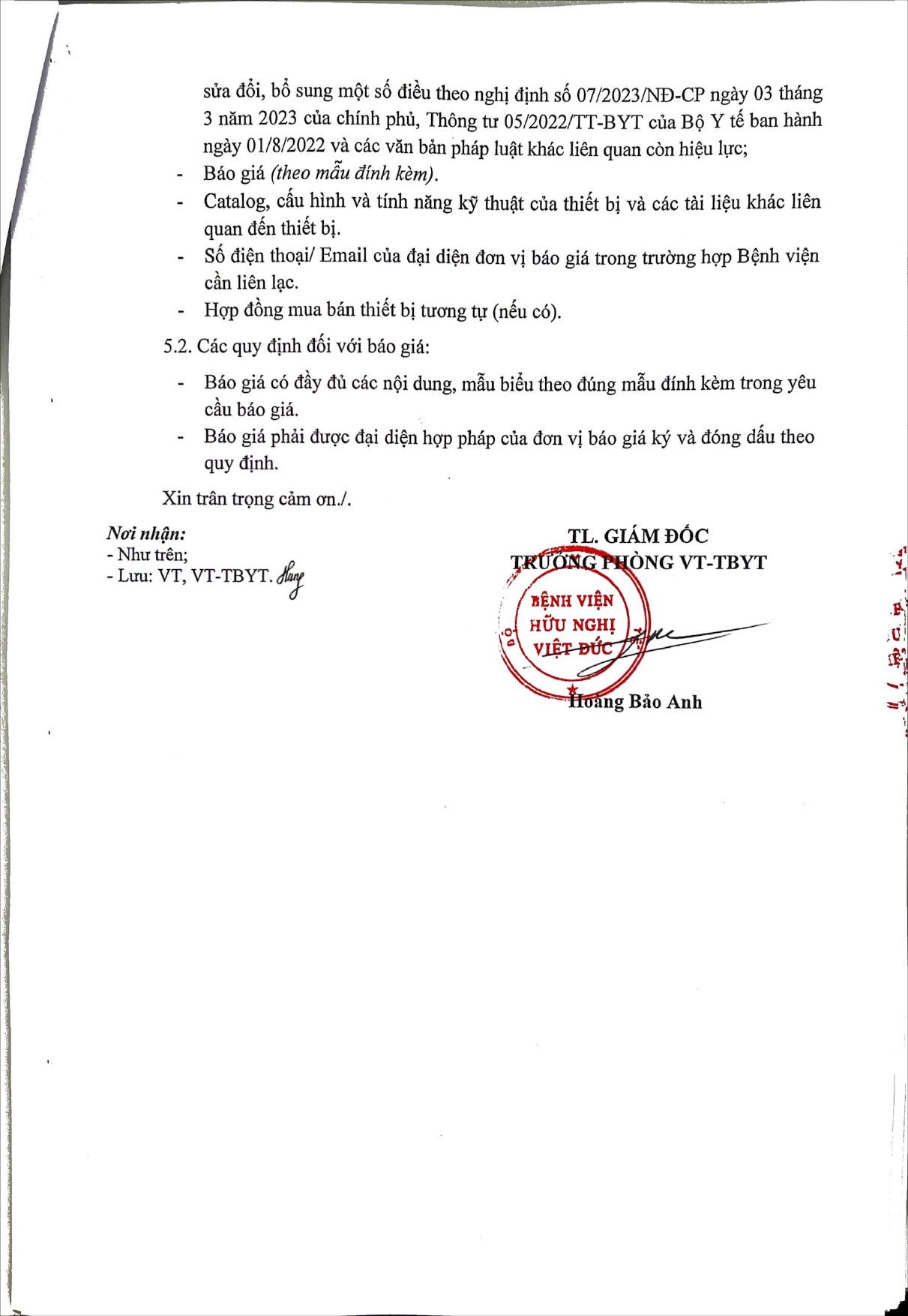 Bệnh viện Hữu nghị Việt Đức có nhu cầu báo giá TTBYT