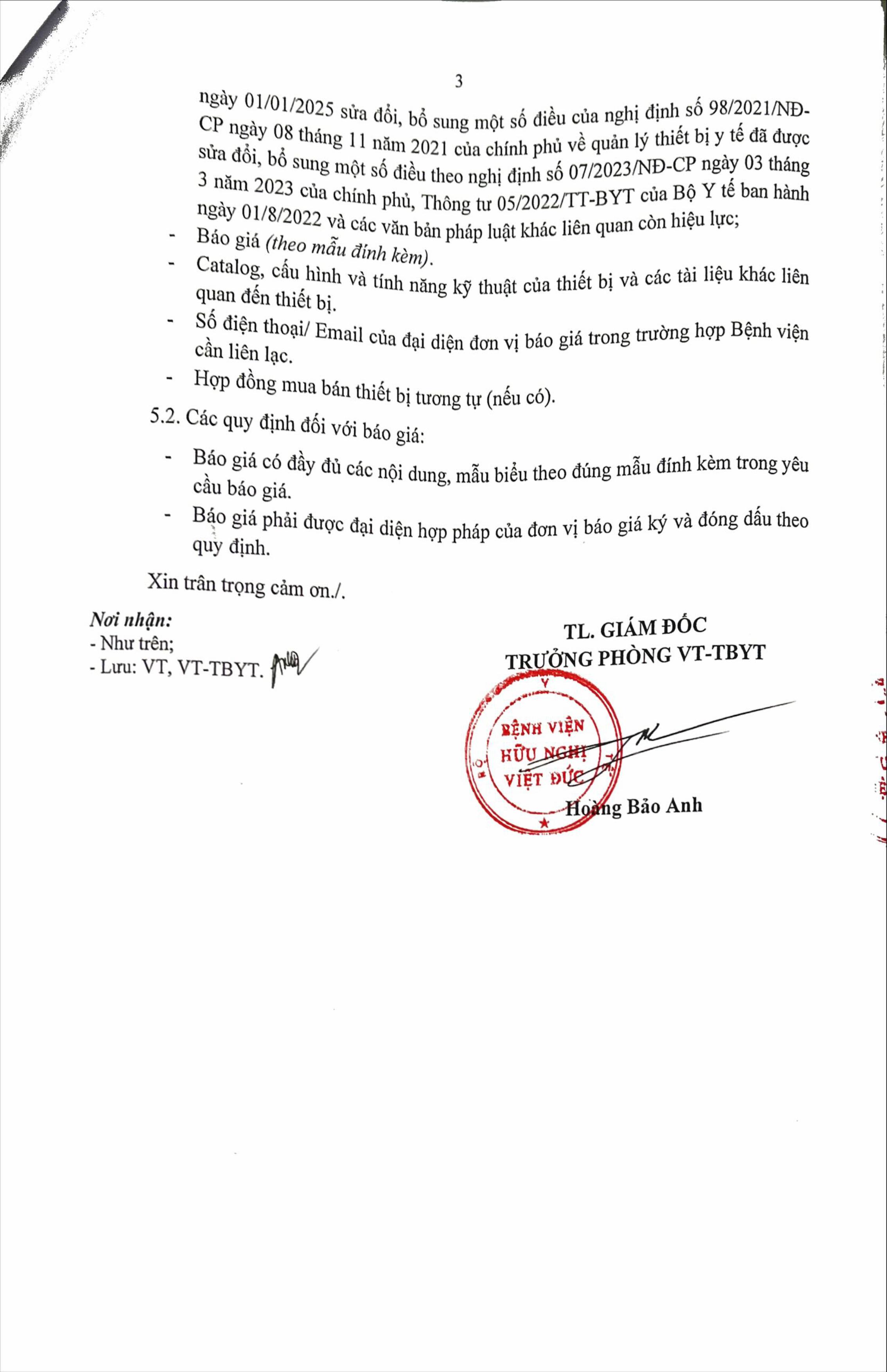 Bệnh viện Hữu nghị Việt Đức có nhu cầu báo giá TTBYT