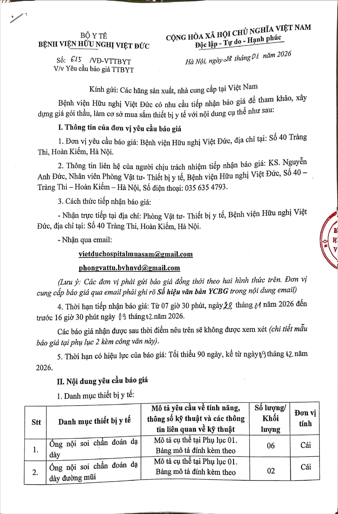 Bệnh viện Hữu nghị Việt Đức có nhu cầu tiếp nhận báo giá tổ chức Hội thảo “Ghép tạng tại Việt Nam: Hiện tại và tương lai” từ ngày 24/03/2025 đến ngày 25/03/2025 theo kế hoạch đã được phê duyệt ngày 06/03/2025, nội dung cụ thể như sau: