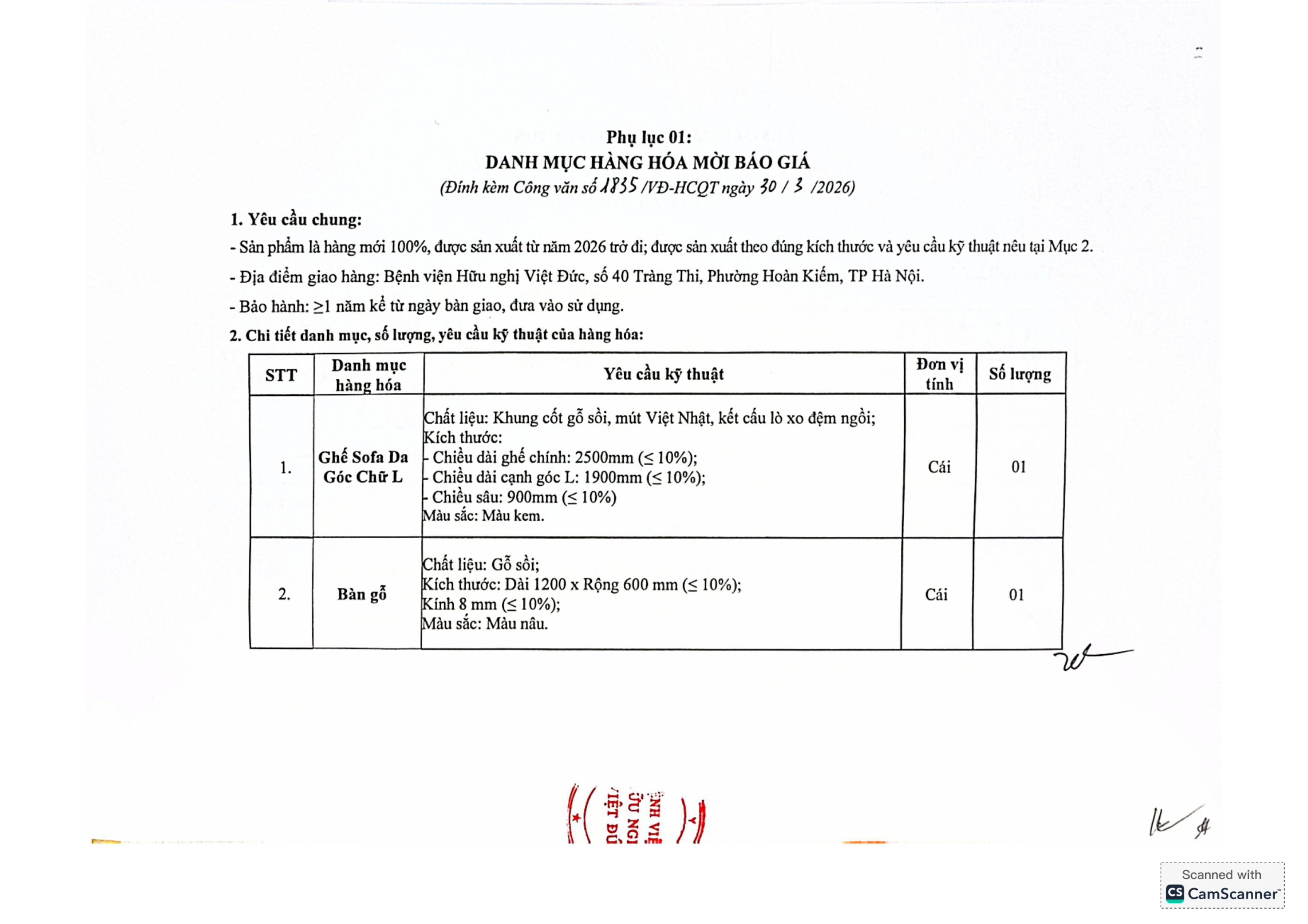 Bệnh viện Hữu nghị Việt Đức có nhu cầu tiếp nhận báo giá để tham khảo, xây dựng giá gói thầu, làm cơ sở tổ chức lựa chọn nhà thầu cho gói thầu bộ bàn ghế sofa phục vụ công tác tư vấn vận động hiến mô, tạng cho Trung tâm ghép tạng tại Bệnh viện với nội dung cụ thể như sau: