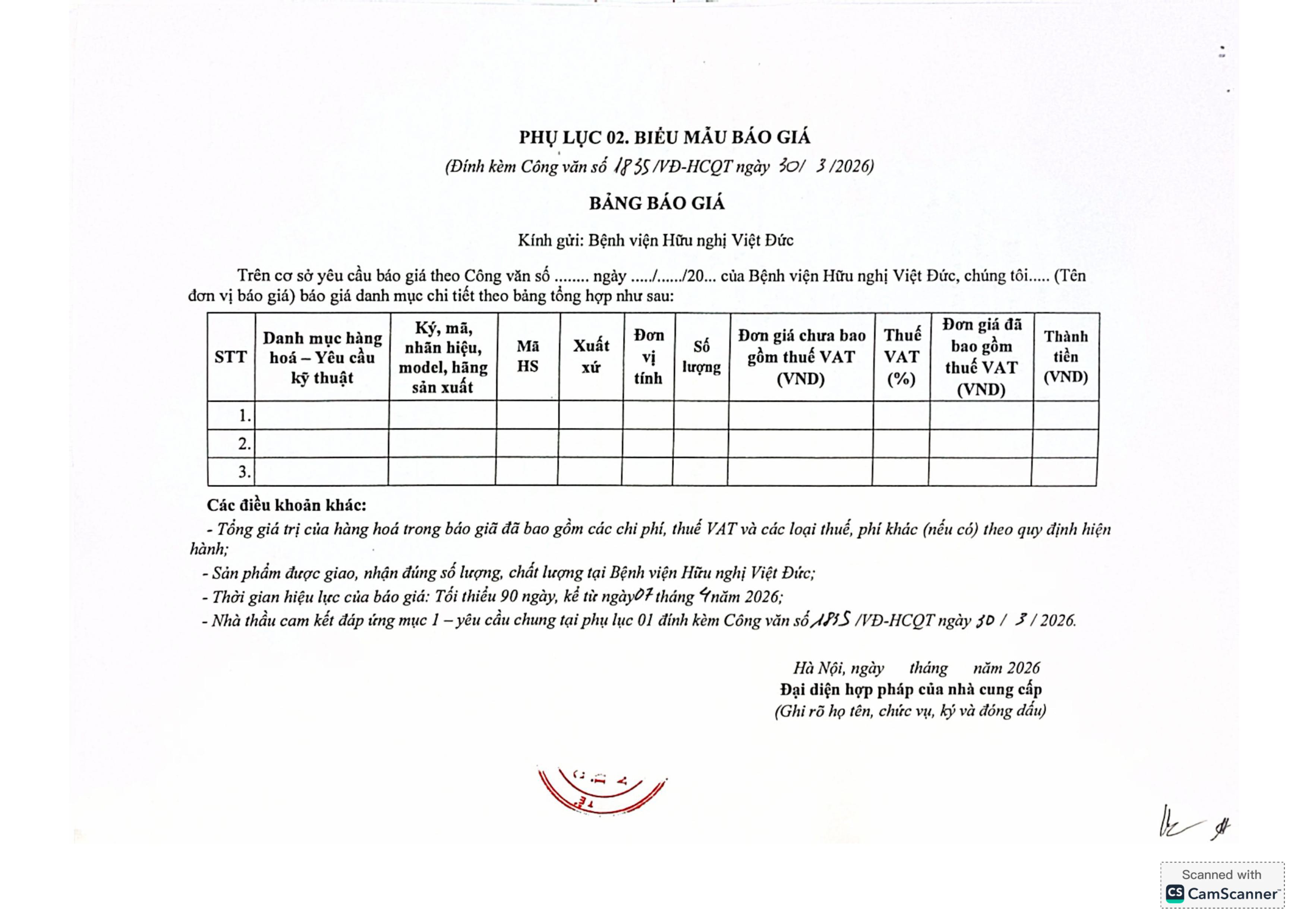 Bệnh viện Hữu nghị Việt Đức có nhu cầu báo giá TTBYT