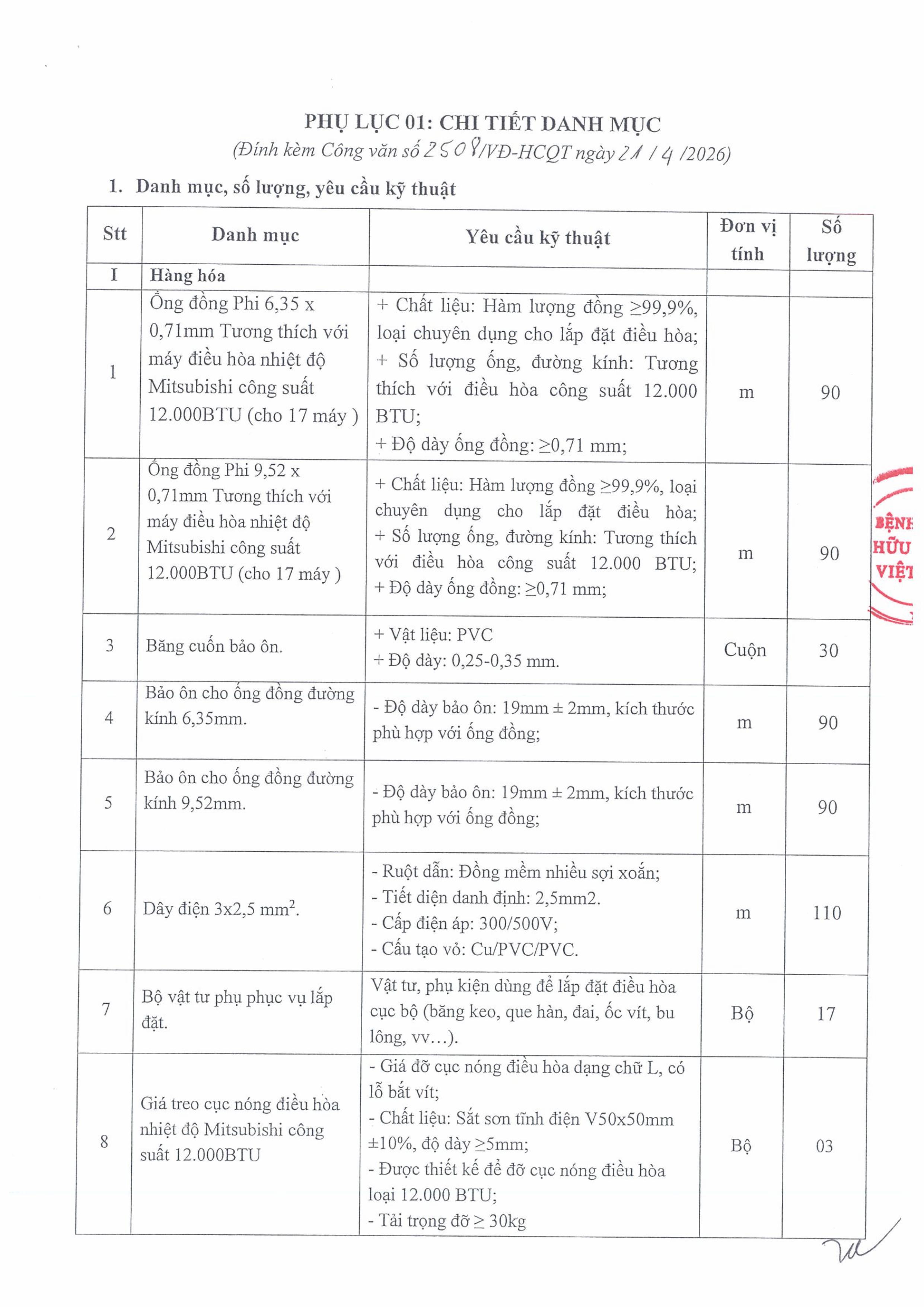 Bệnh viện Hữu nghị Việt Đức có nhu cầu Yêu cầu báo giá lắp đặt điều hoà trong Bệnh viện