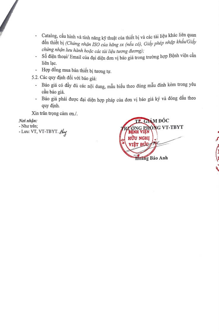 Bệnh viện Hữu nghị Việt Đức có nhu cầu Yêu cầu báo giá TTBYT