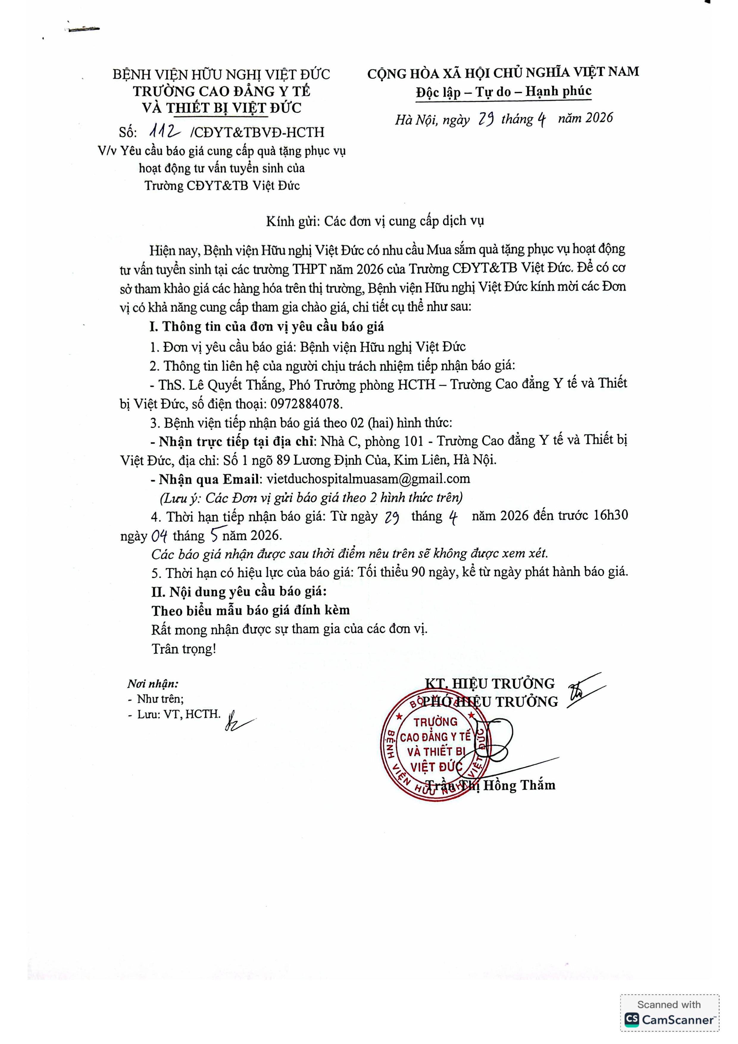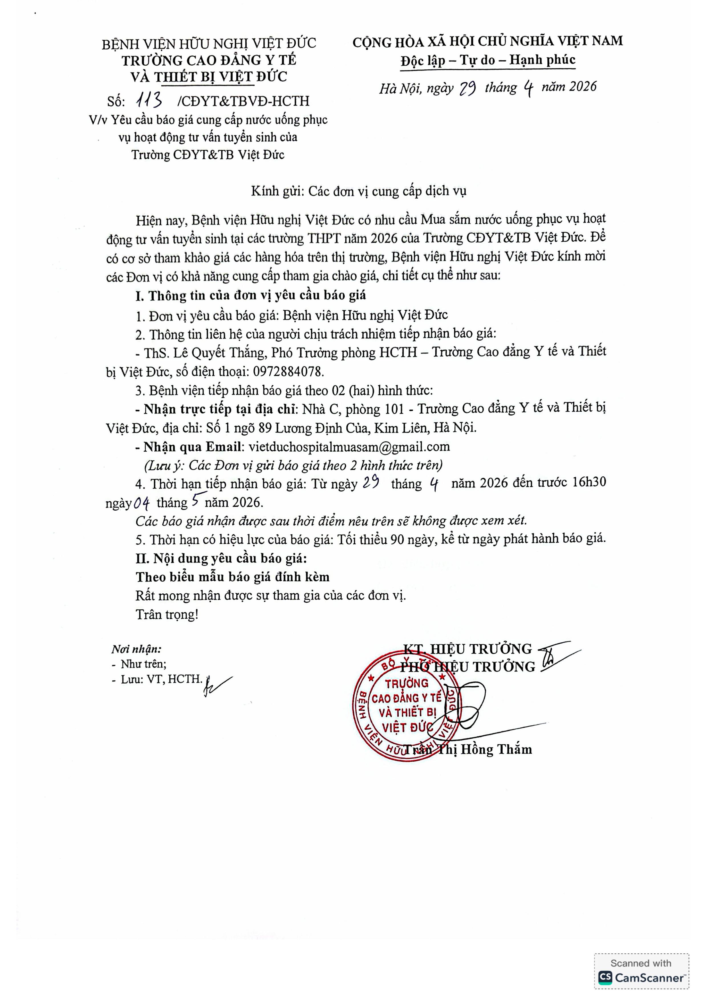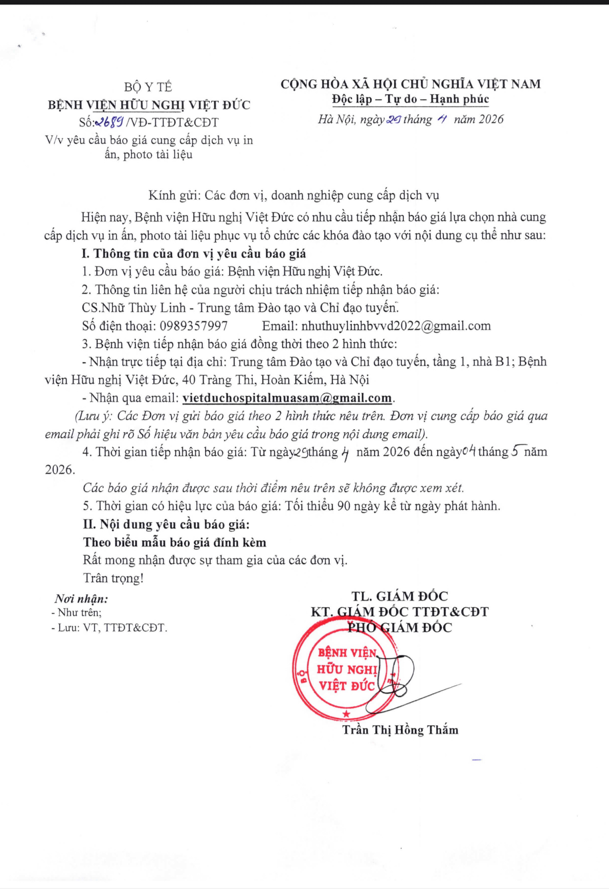 Bệnh viện Hữu nghị Việt Đức công bố quyết định lựa chọn nhà thầu cung cấp vật tư y tế