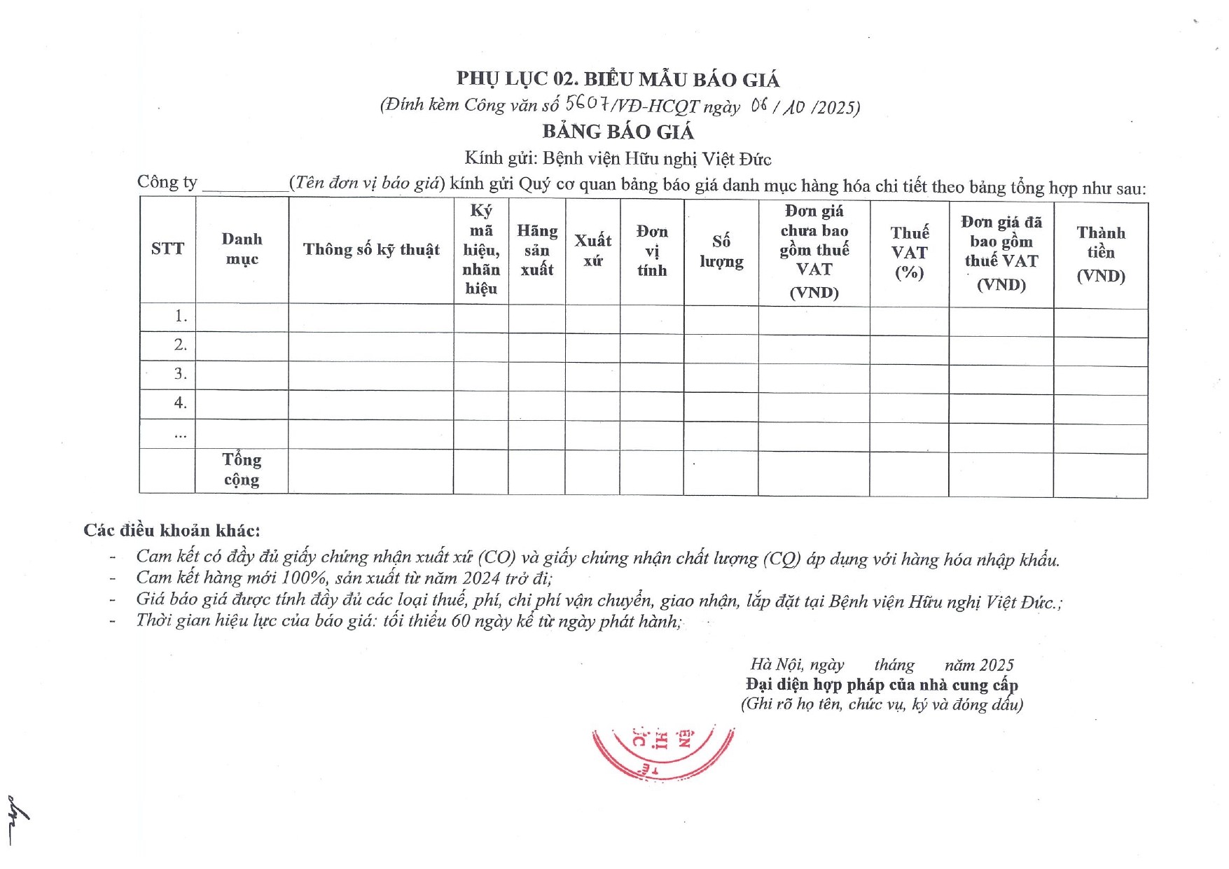 Hiện nay, Bệnh viện Hữu nghị Việt Đức có nhu cầu di chuyển 10 cục nóng điều hòa nhiệt độ tại khu nhà B9 của Bệnh viện. Để có cơ sở tham khảo giá dịch vụ di chuyển cục nóng điều hòa nhiệt độ và vật tư đi kèm trên thị trường, Bệnh viện Hữu nghị Việt Đức kính mời các đơn vị có khả năng cung cấp đến khảo sát và tham gia báo giá với nội dung cụ thể như sau:
