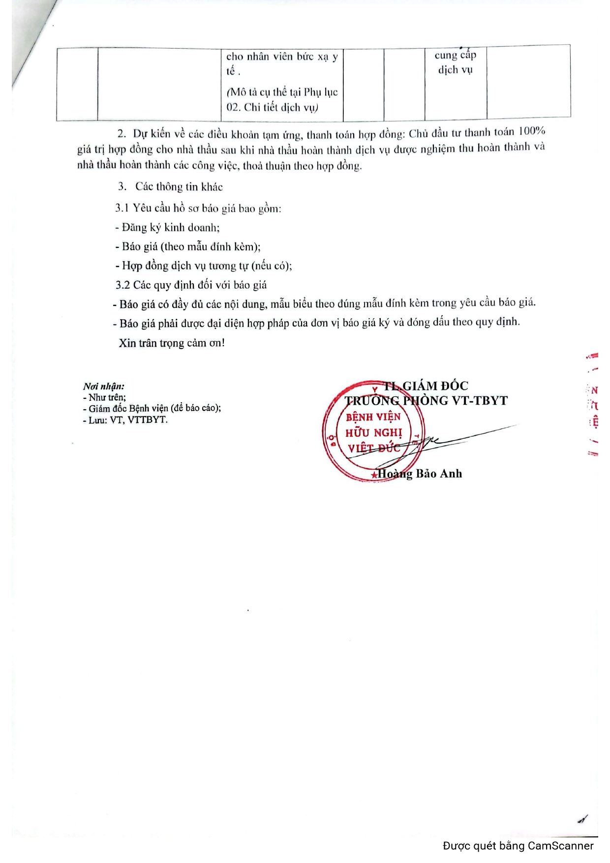 Hiện nay, Bệnh viện Hữu nghị Việt Đức có nhu cầu nhận báo giá để tham khảo, xây dựng giá gói thầu, làm cơ sở tổ chức lựa chọn nhà thầu cho gói thầu dịch vụ đo liều xạ kế cá nhân năm 2026 với nội dung cụ thể như sau:
