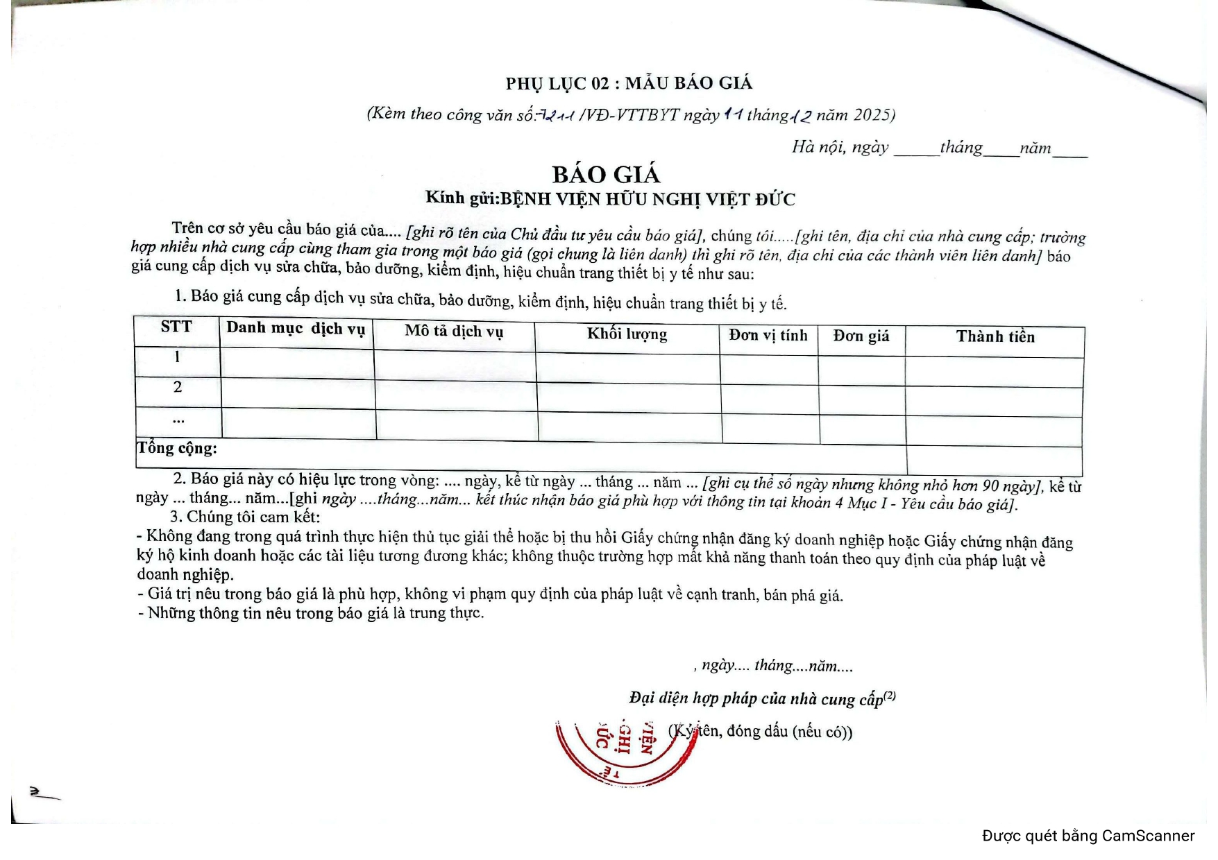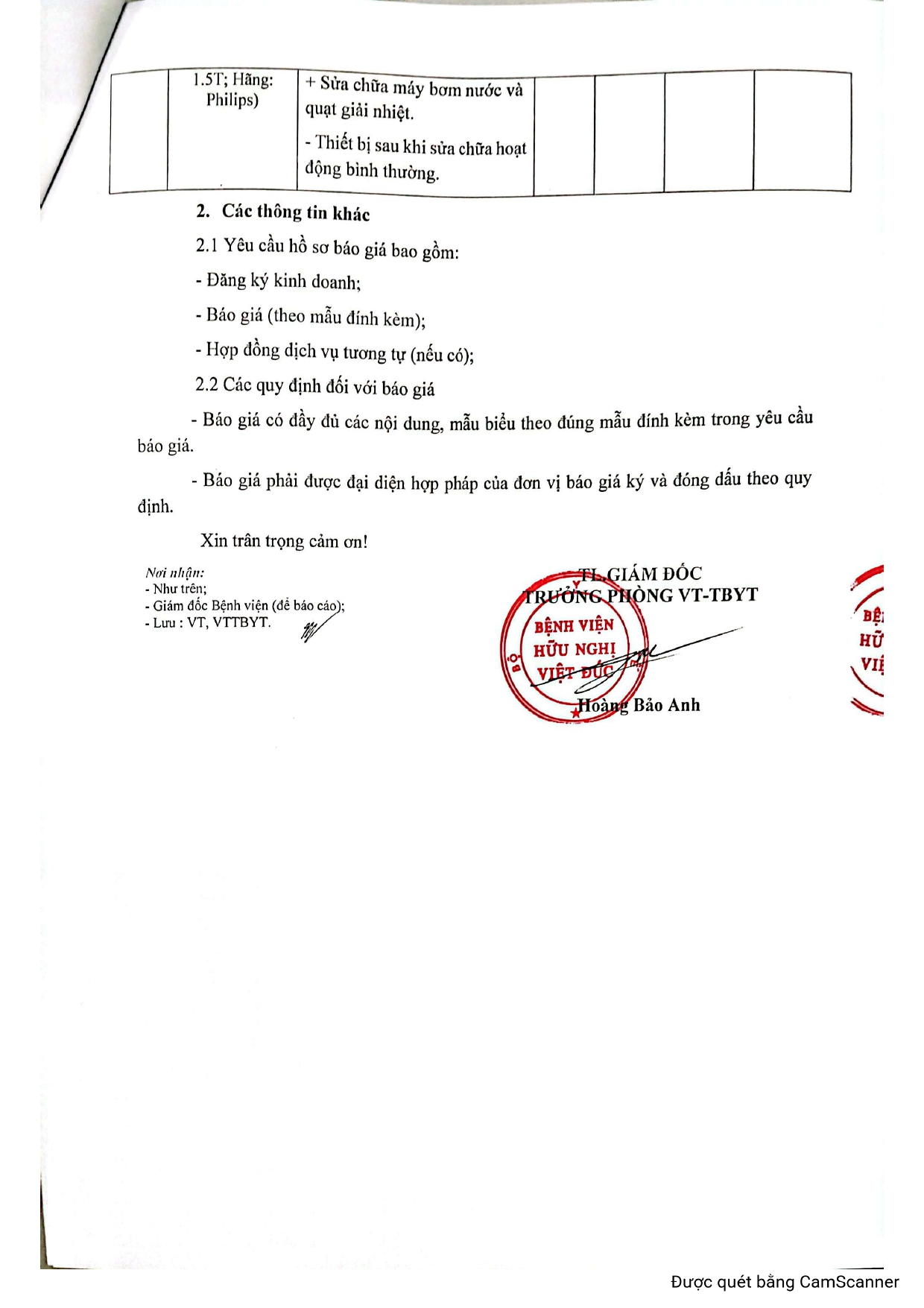 Bệnh viện Hữu nghị Việt Đức mời chào báo giá dịch vụ sửa chữa hệ thống cộng hưởng từ 1.5T (Model: Ingenia 1.5T; Hãng: Philips)