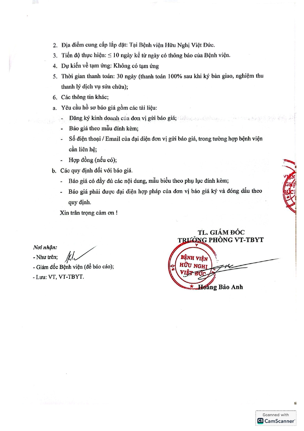 Bệnh viện Hữu nghị Việt Đức mời chào báo giá dịch vụ TTBYT