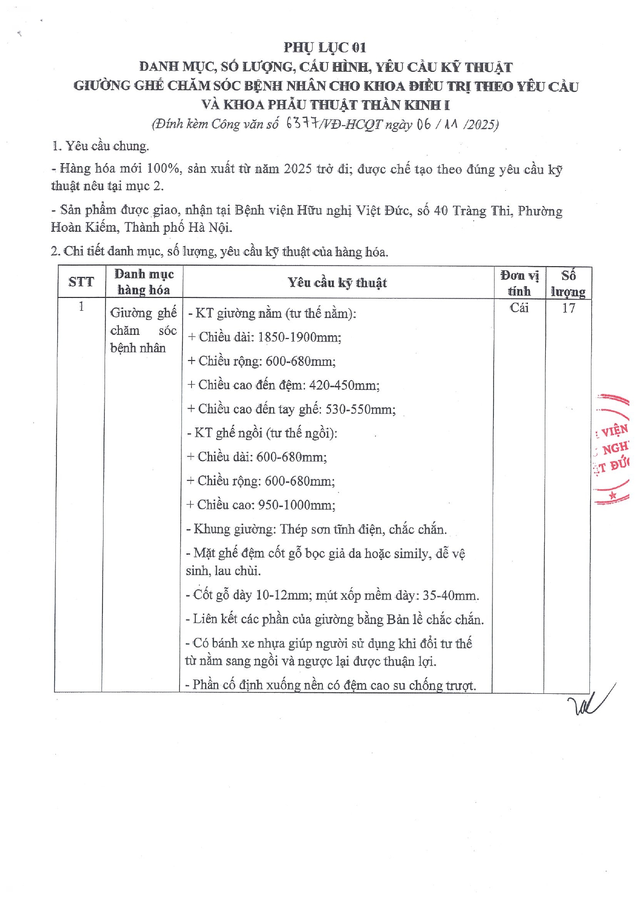 Bệnh viện Hữu nghị Việt Đức mời chào báo giá giường ghế chăm sóc bệnh nhân cho khoa Điều trị theo yêu cầu và khoa Phẫu thuật thần kinh 1