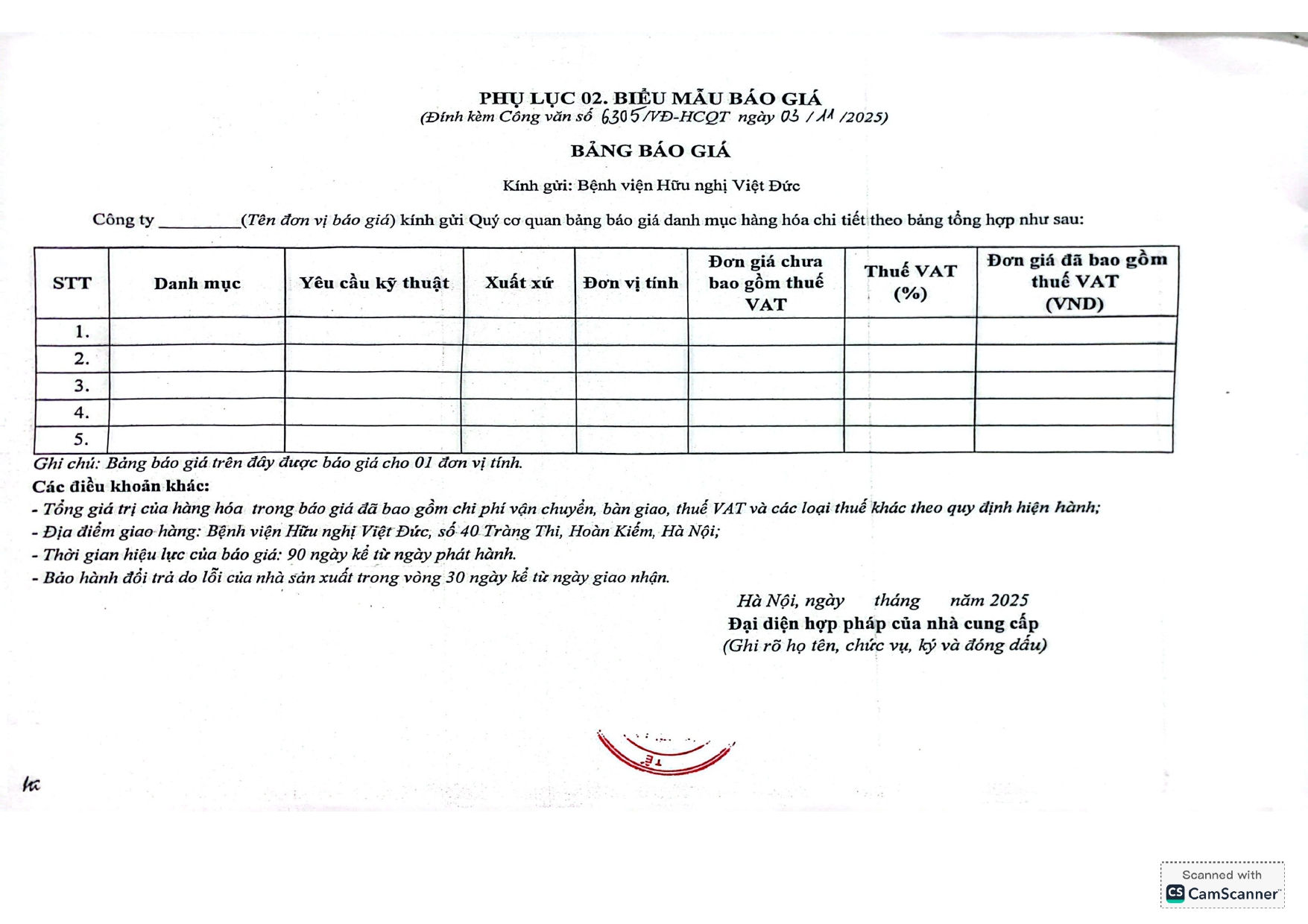 Bệnh viện Hữu nghị Việt Đức mời chào báo giá hàng hóa phục vụ công tác chuyên môn