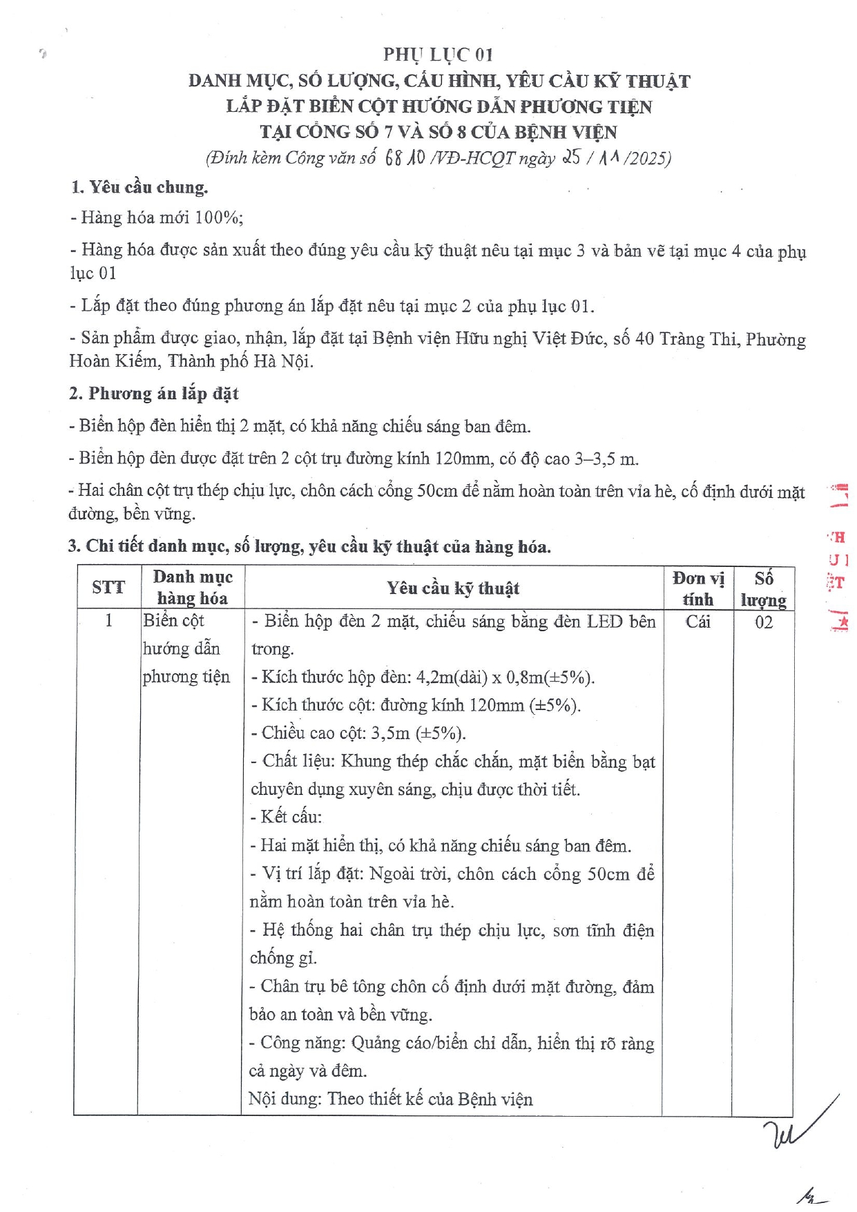 Bệnh viện Hữu nghị Việt Đức mời chào báo giá lắp đặt biển cột hướng dẫn phương tiện tại cổng số 7 và số 8 của bệnh viện
