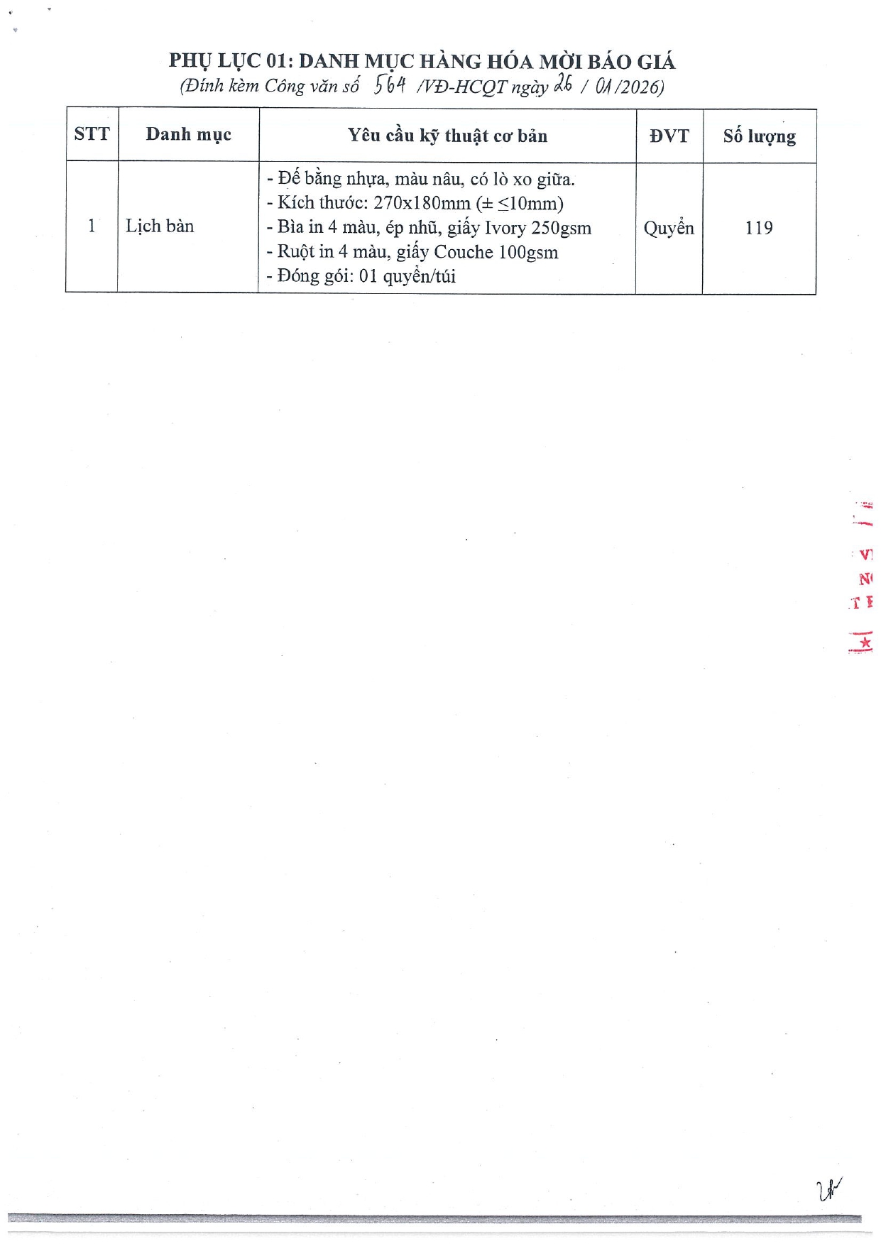 Bệnh viện Hữu nghị Việt Đức mời chào báo giá lịch bàn năm 2026