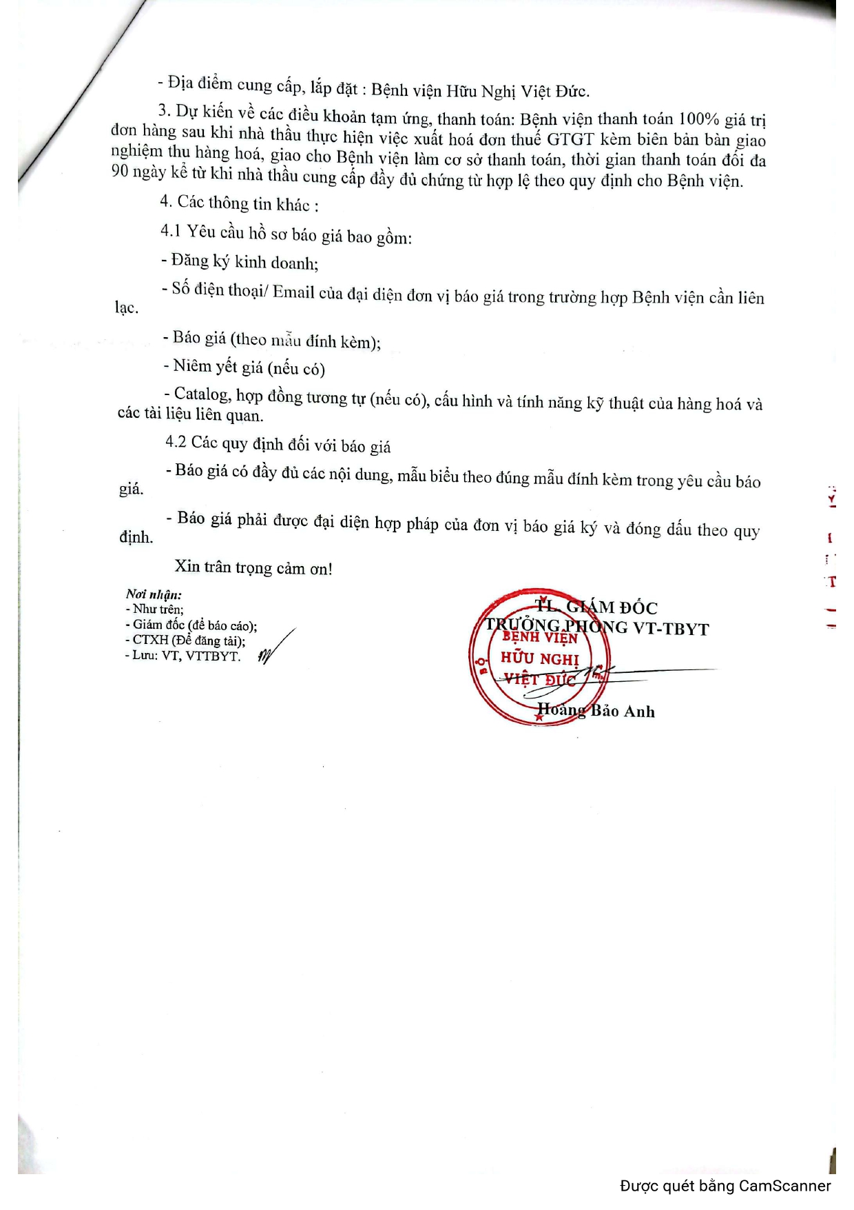Bệnh viện Hữu nghị Việt Đức mời chào báo giá mua sắm dây quang truyền tín hiệu cho hệ thống cộng hưởng từ 1.5T (Model: Ingenia 1.5T; Hãng: Philips) khoa Chẩn đoán hình ảnh.