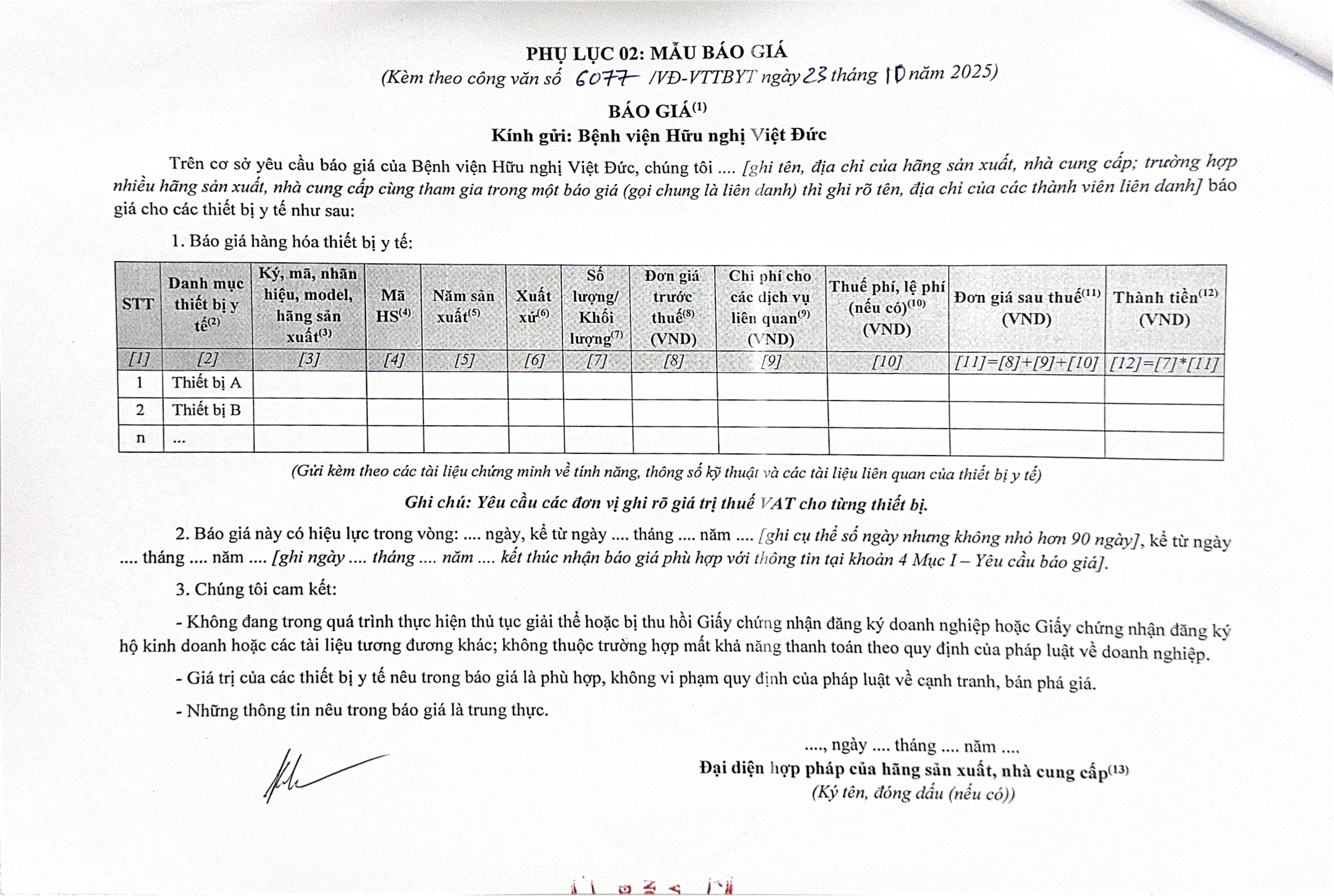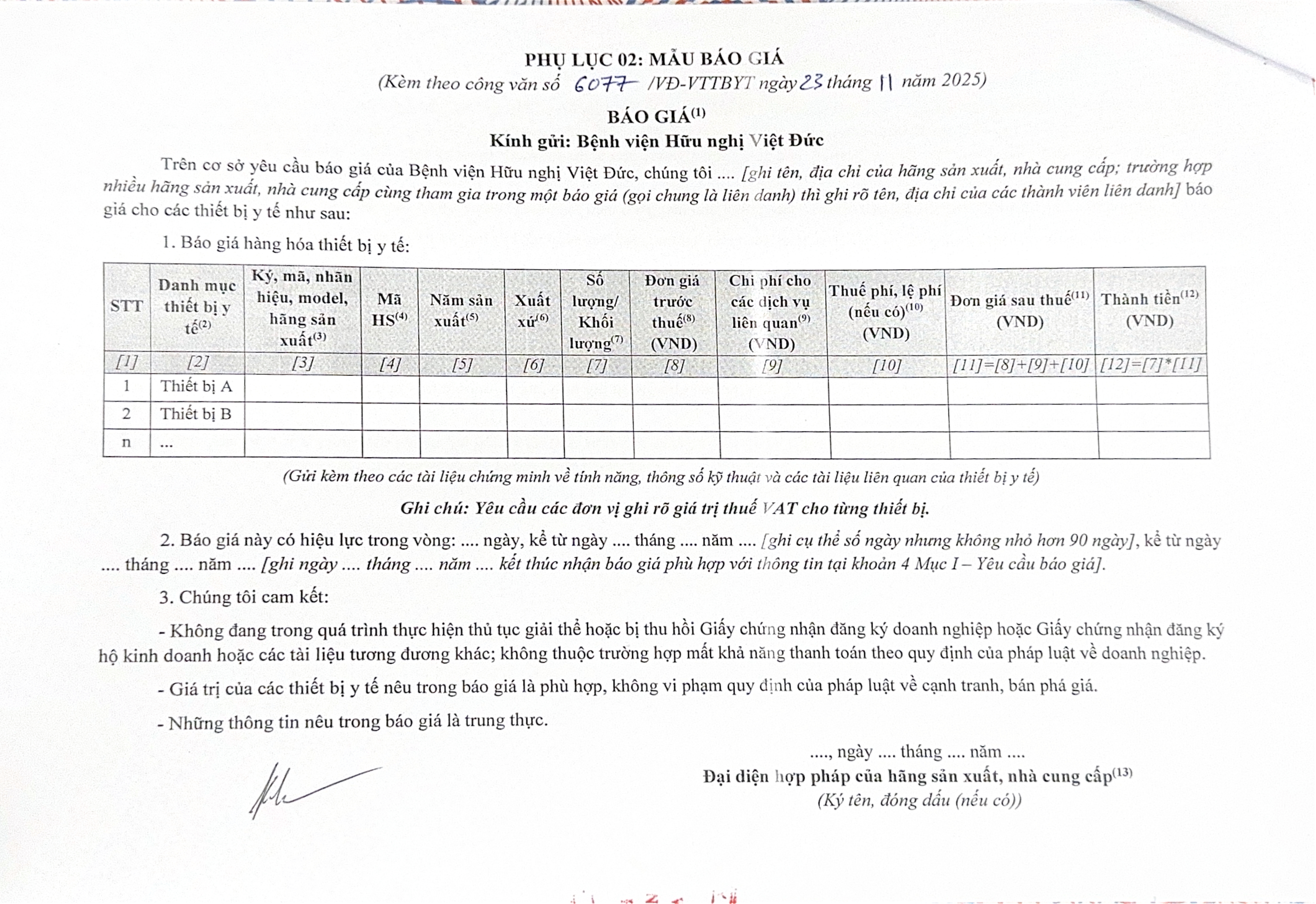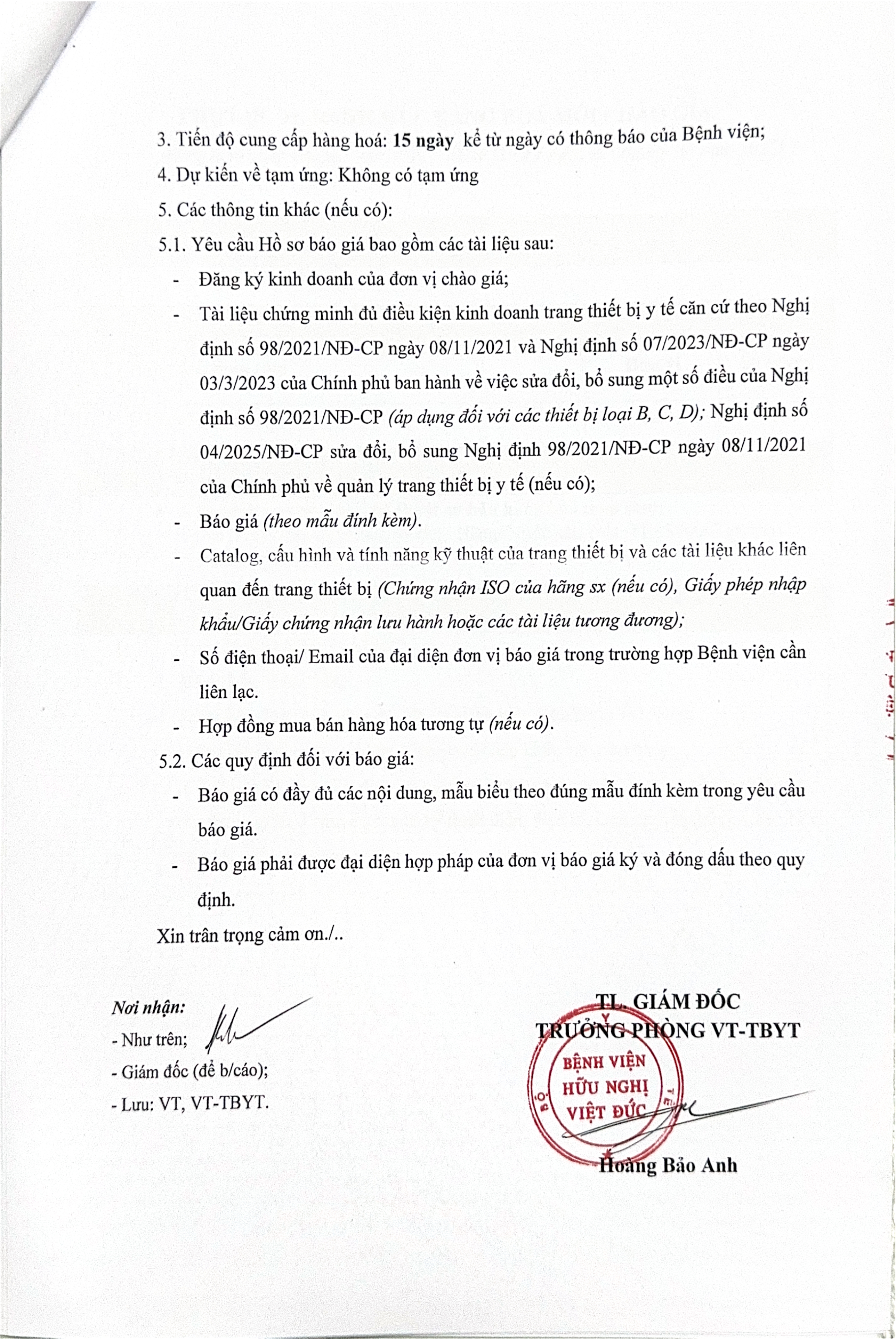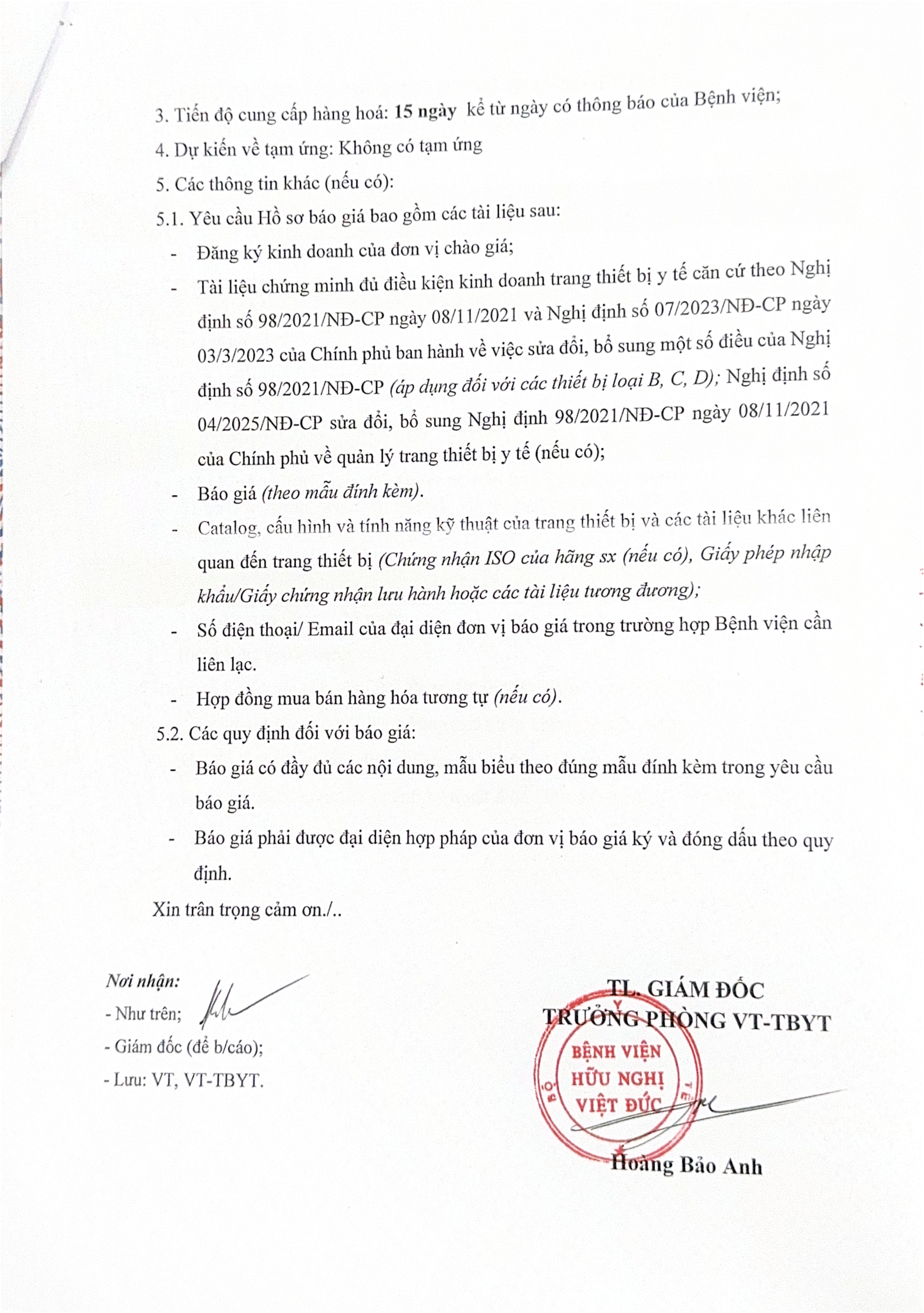 Bệnh viện Hữu nghị Việt Đức mời chào báo giá TTBYT