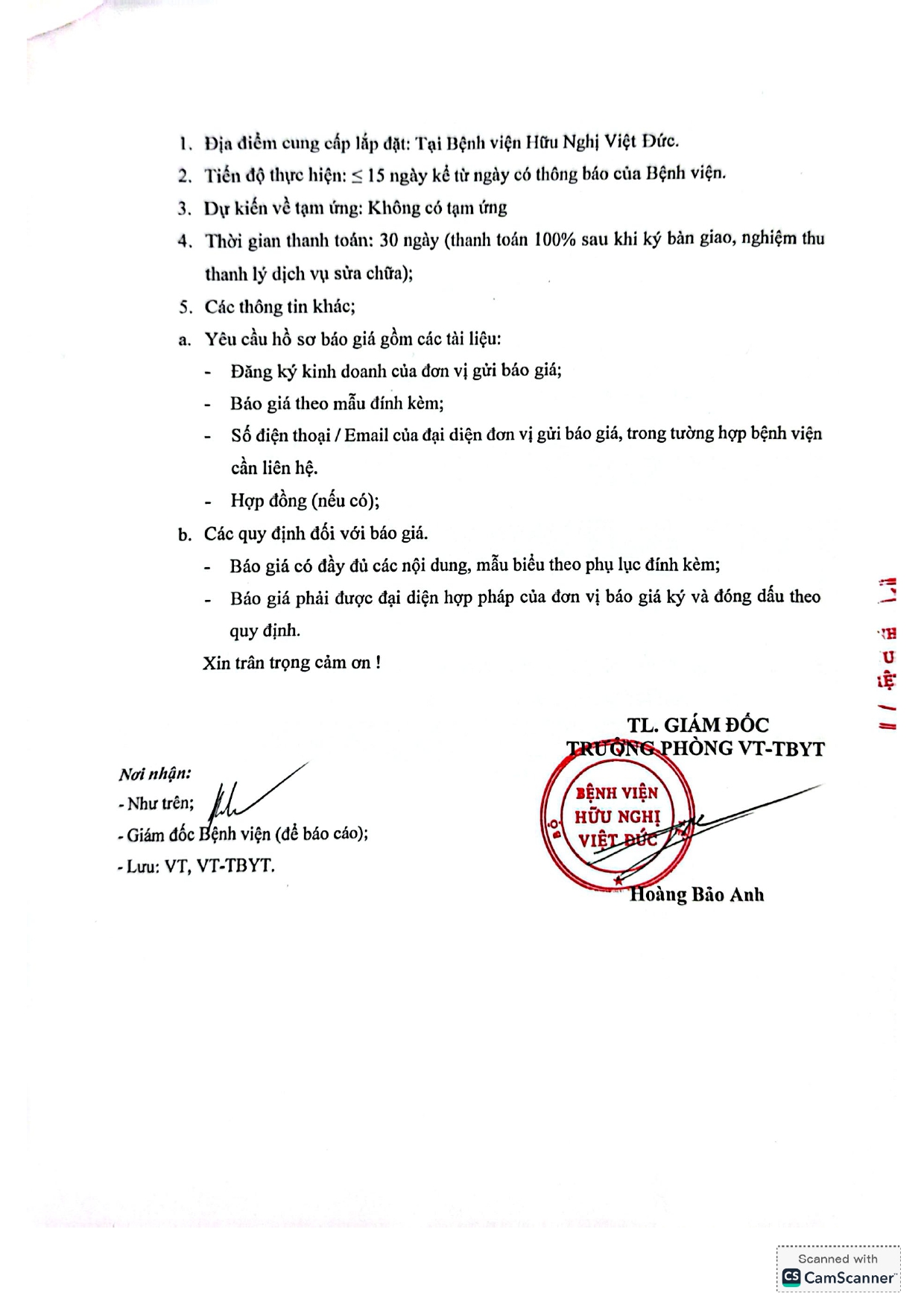 Bệnh viện Hữu nghị Việt Đức mời chào báo giá TTBYT