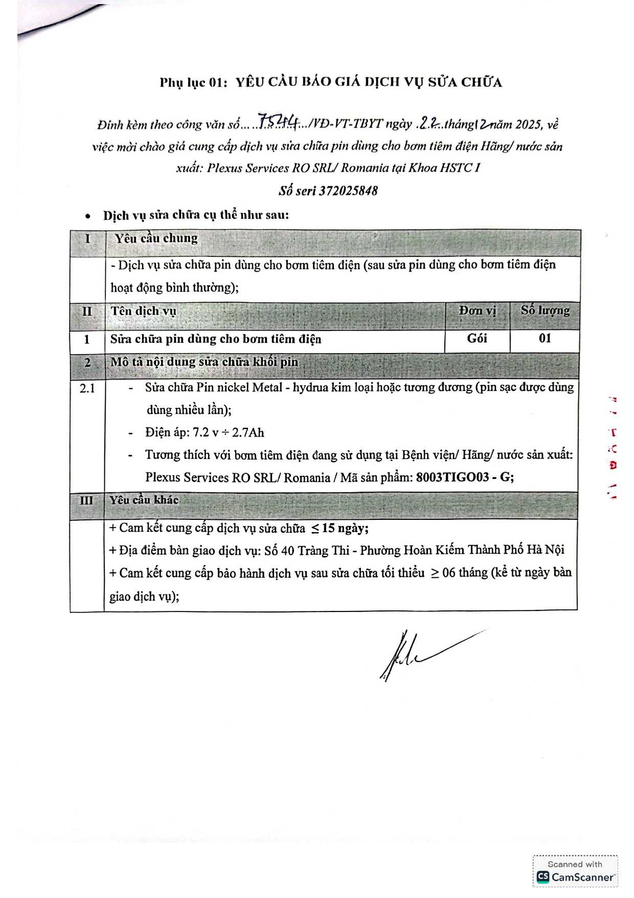 Bệnh viện Hữu nghị Việt Đức có nhu cầu tiếp nhận báo giá để tham khảo, xây dựng giá gói thầu: Dịch vụ sửa chữa pin dùng cho bơm tiêm điện Hãng/ nước sản xuất: Plexus Services RO SRL, Romania tại Khoa HSTC I với nội dung cụ thể như sau: