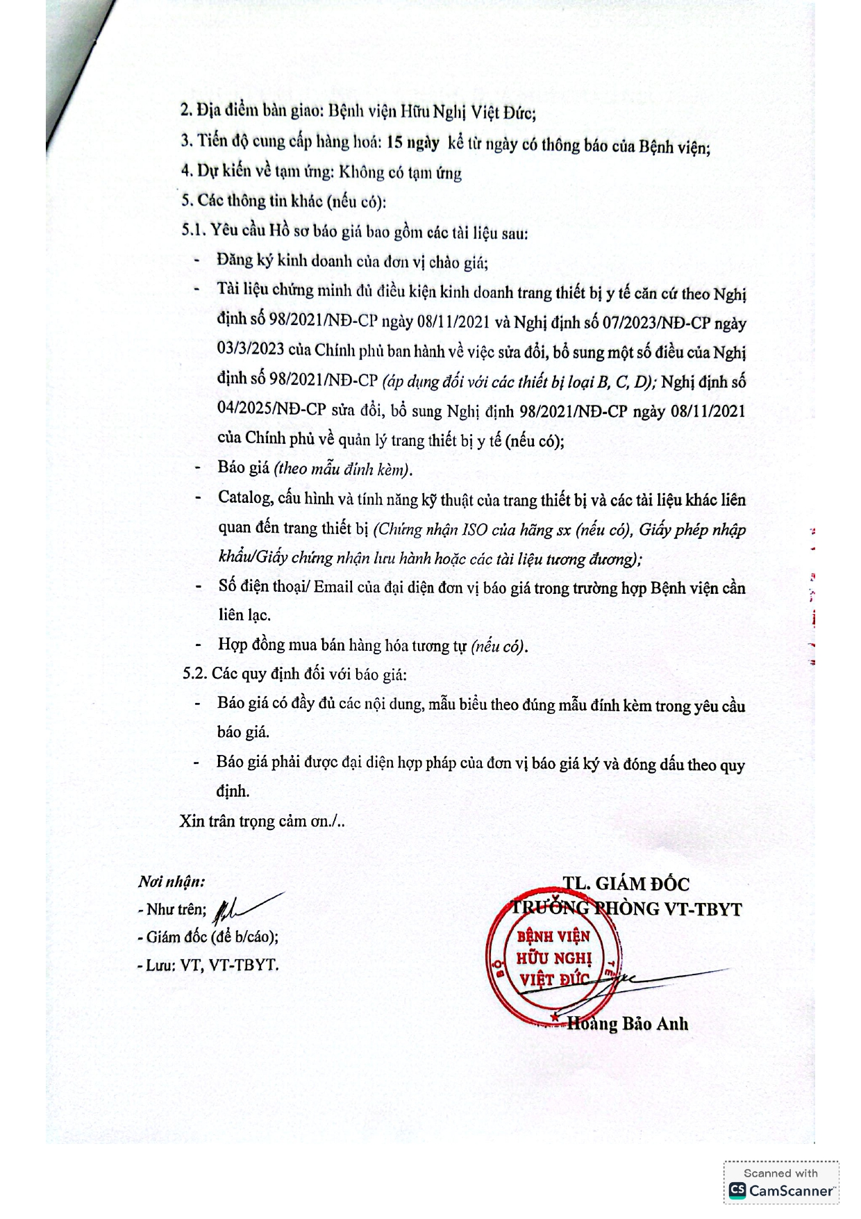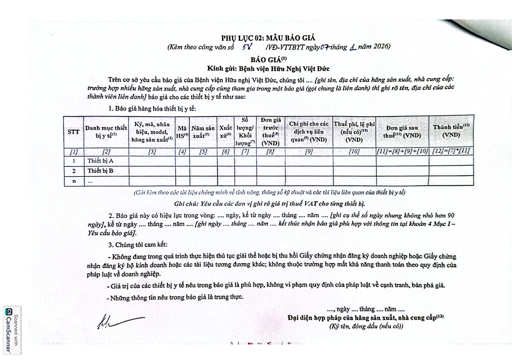 Bệnh viện Hữu nghị Việt Đức mời chào báo giá TTBYT