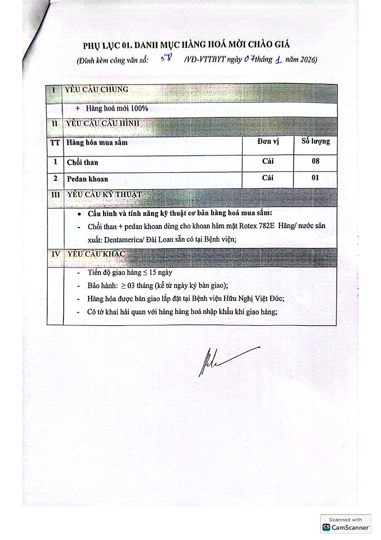 Bệnh viện Hữu nghị Việt Đức có nhu cầu tiếp nhận báo giá để tham khảo, xây dựng giá gói thầu: Mua sắm mới 08 chổi than + 01 pedan dùng trong mổ Phẫu Thuật Tạo Hình Hàm Mặt Thẩm Mỹ tại Khoa GM I & Khoa GM II với nội dung cụ thể như sau: