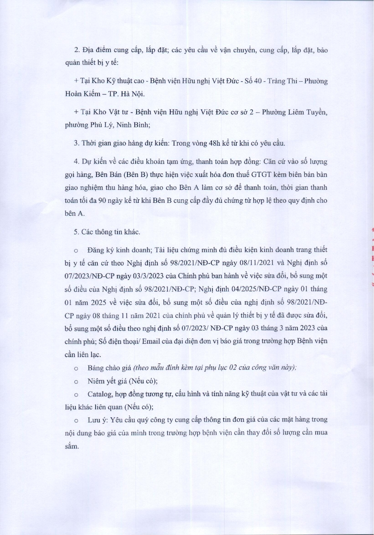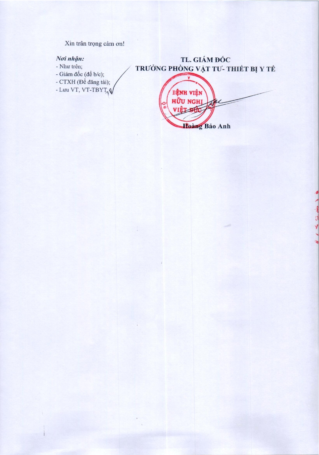 Bệnh viện Hữu nghị Việt Đức mời chào báo giá vật tư y tế