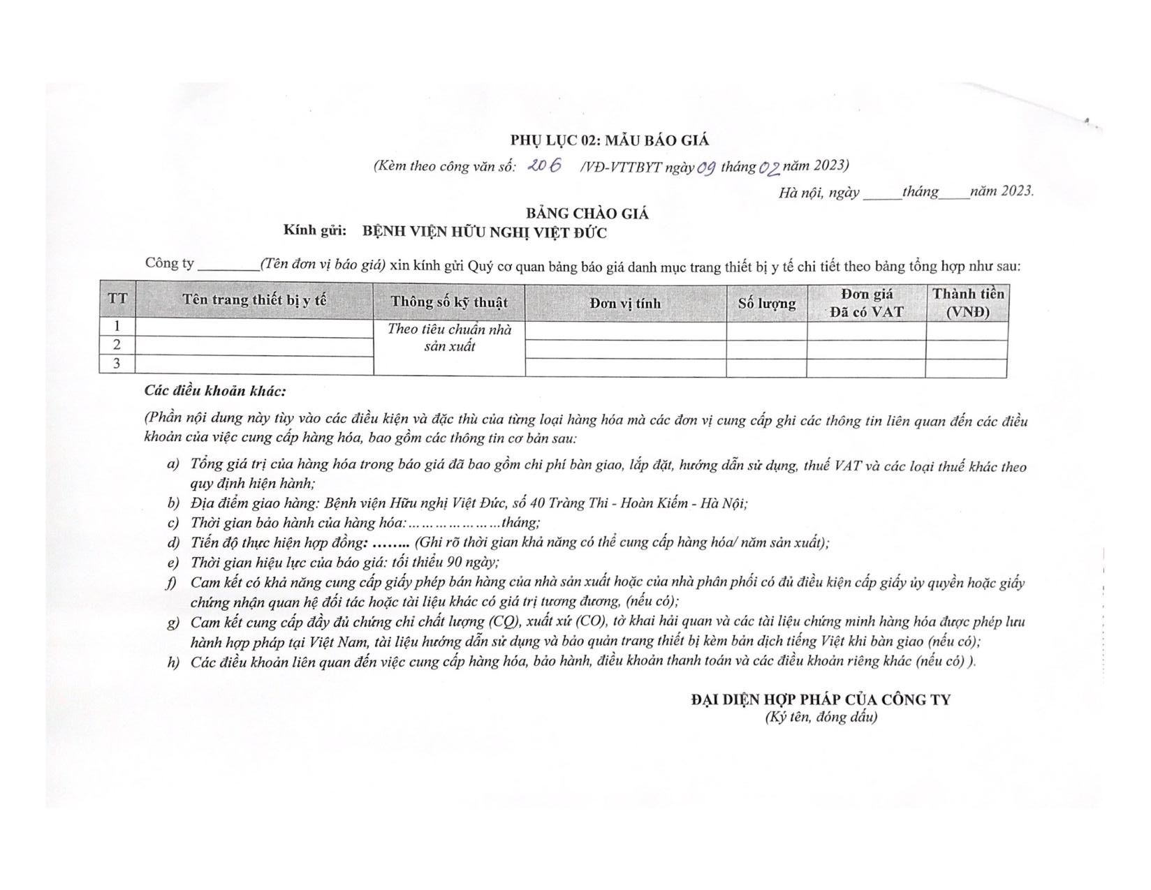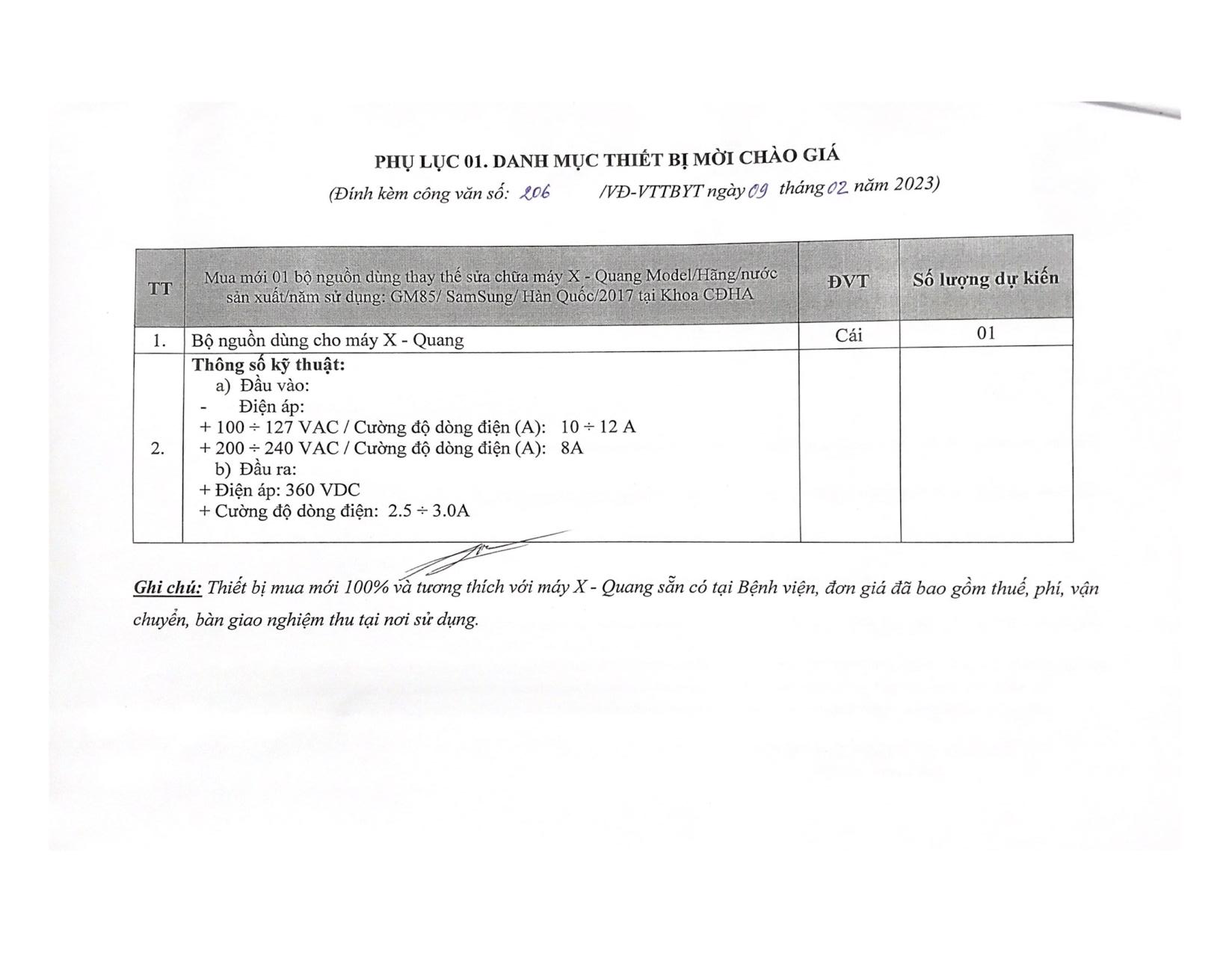Bệnh Viện Hữu Nghị Việt Đức mời chào giá 01 bộ nguồn dùng thay thế sửa chữa máy X – Quang