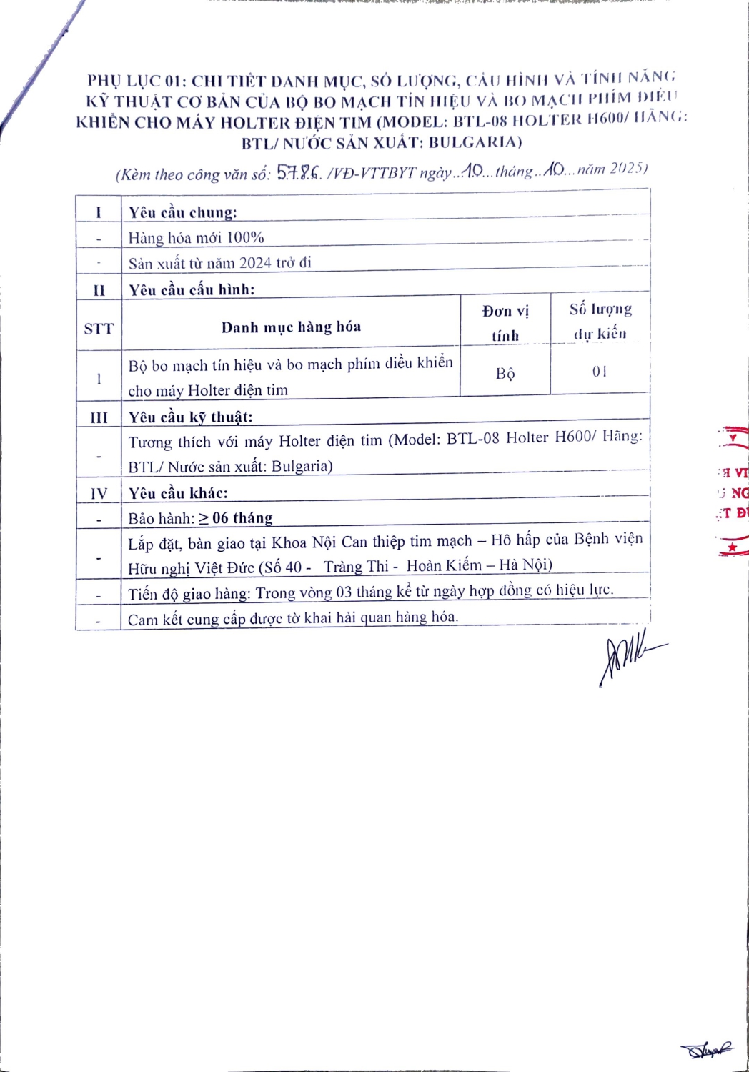 Bệnh viện Hữu nghị Việt Đức có nhu cầu tiếp nhận báo giá để tham khảo, xây dựng giá gói thầu, làm cơ sở tổ chức lựa chọn nhà thầu cho gói thầu cung cấp bộ bo mạch tín hiệu và bo mạch phím điều khiển cho máy Holter điện tim (Model: BTL-08 Holter H600/ Hãng: BTL/ Nước sản xuất: Bulgaria) với nội dung cụ thể như sau: