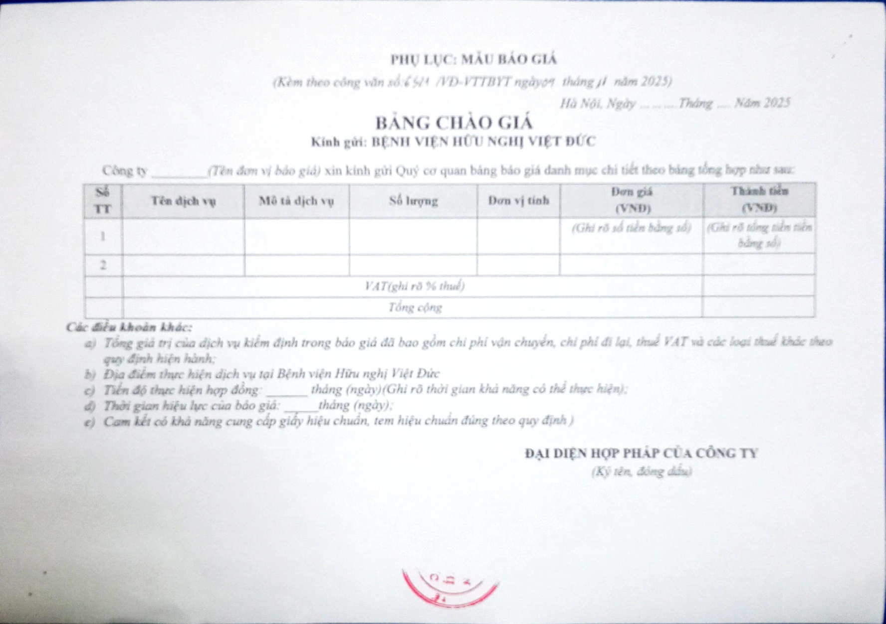 Bệnh viện Hữu nghị Việt Đức mời chào giá cung cấp dịch vụ kiểm định thiết bị đo nhóm 2