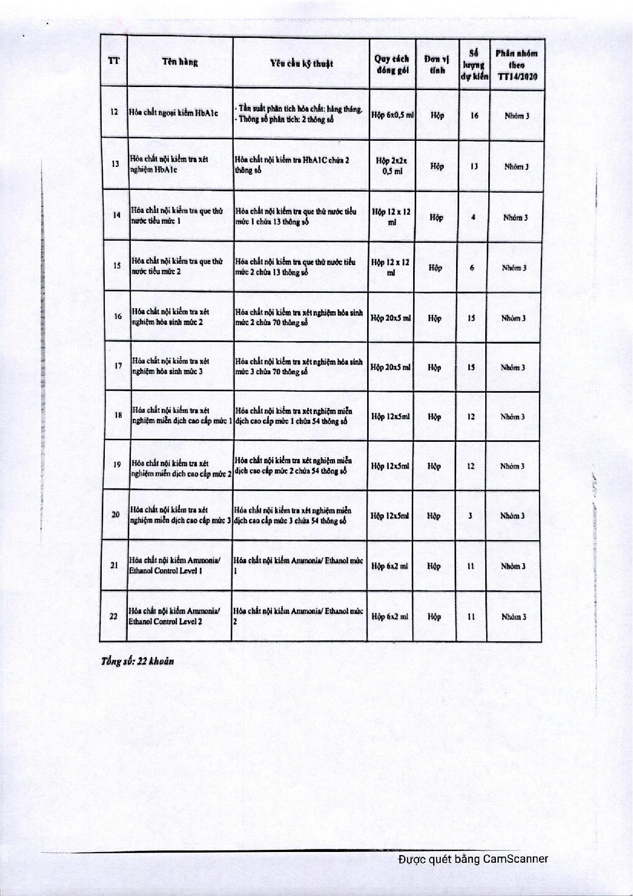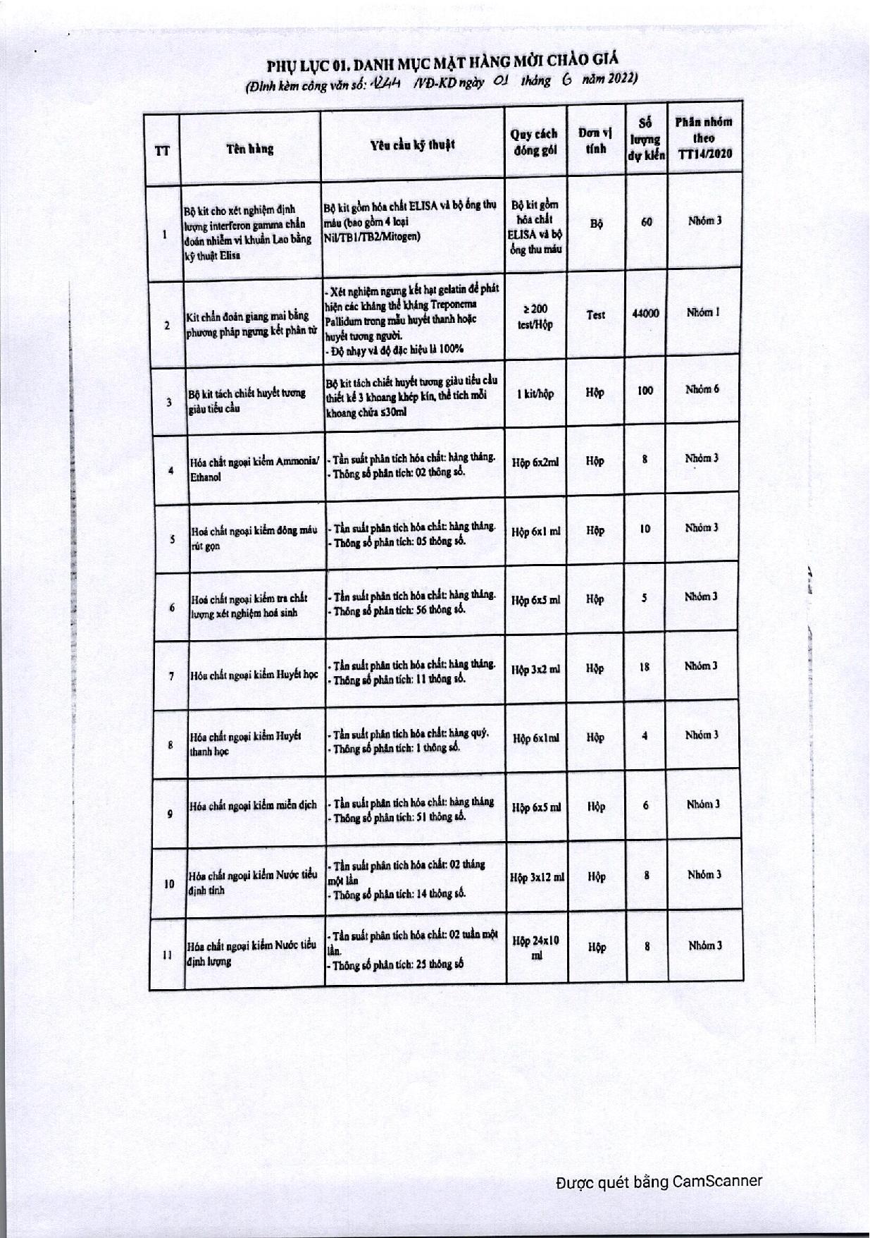 Hiện nay, Bệnh viện Hữu nghị Việt Đức đang có nhu cầu mua bổ sung một số hóa chất phục vụ công tác chuyên môn tại đơn vị. Bệnh viện kính mời các đơn vị quan tâm tham gia chào các mặt hàng sau.
