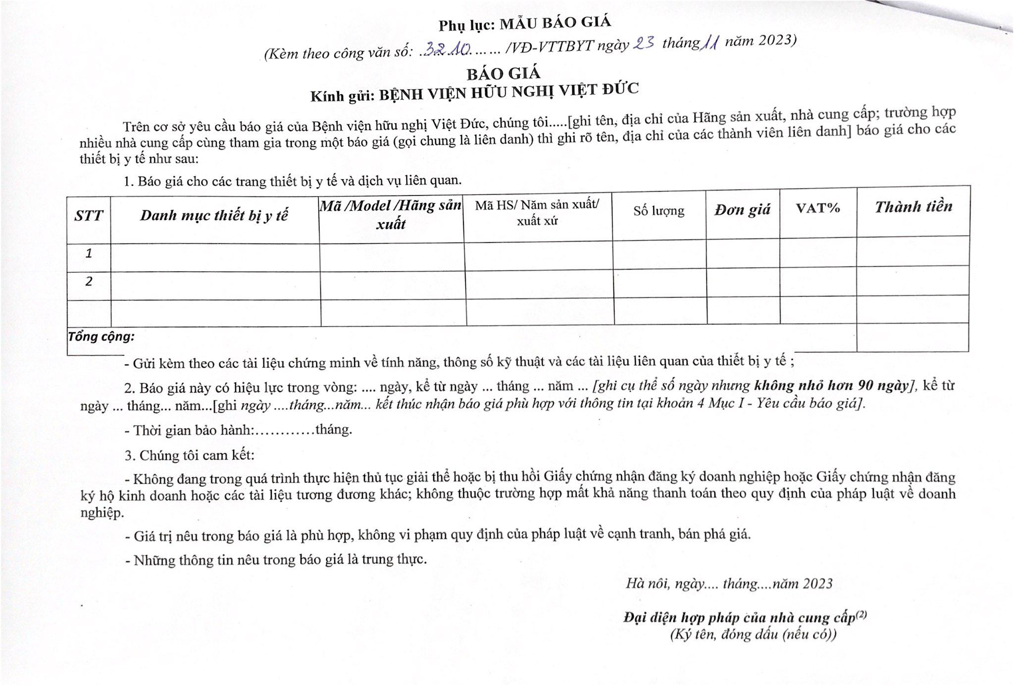 Bệnh viện Hữu nghị Việt Đức đang có nhu cầu tiếp nhận báo giá để tham khảo xây dựng giá gói thầu làm cơ sở tổ chức lựa chọn nhà thầu cho gói thầu: Mua sắm phụ kiện sửa chữa máy truyền dịch Model TELF630 và Model TELF600 tại Khoa HSTC II với nội dung cụ thể như sau: