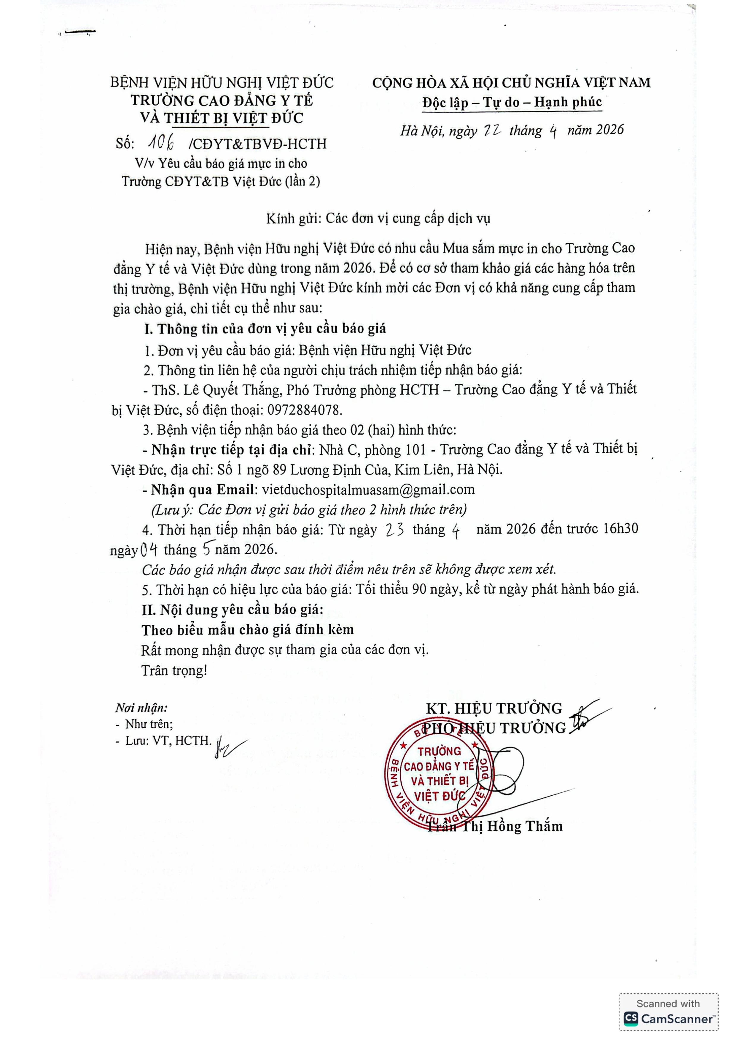 Bệnh viện Hữu nghị Việt Đức mời chào giá trang thiết bị y tế