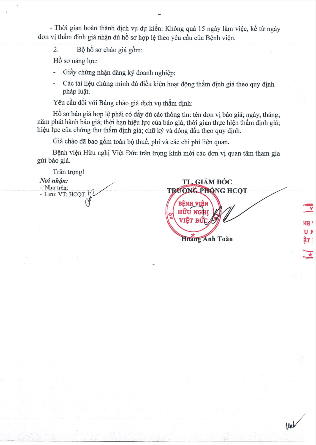 Bệnh viện Hữu nghị Việt Đức yêu cầu báo giá cung cấp dịch vụ thẩm định giá