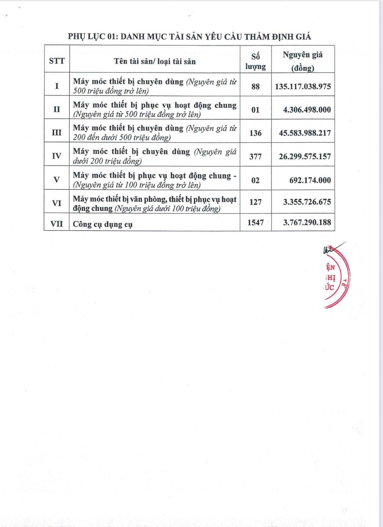 Bệnh viện Hữu nghị Việt Đức có nhu cầu tiếp nhận báo giá để làm cơ sở xác định giá trị tài sản phục vụ công tác thanh lý tài sản theo quy định của Nhà nước hiện hành. Bệnh viện thông báo rộng rãi tới các đơn vị có chức năng thẩm định giá, đủ năng lực, kinh nghiệm cung cấp dịch vụ thẩm định giá gửi chào giá dịch vụ thẩm định giá tài sản/CCDC của Bệnh viện, cụ thể như sau: