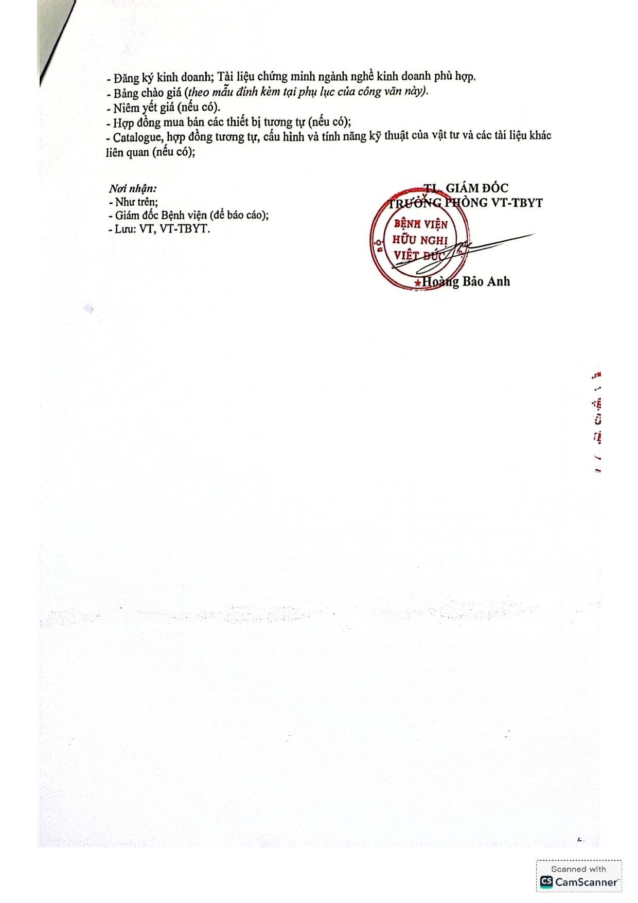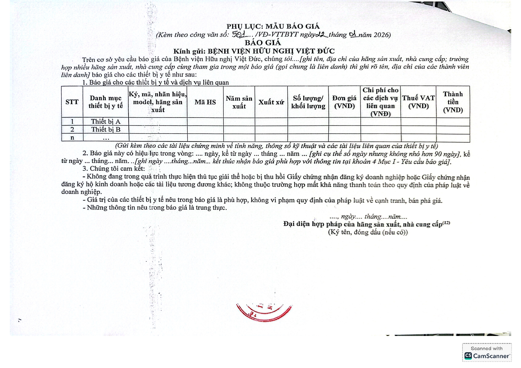 Bệnh viện Hữu nghị Việt Đức có nhu cầu tiếp nhận báo giá để tham khảo, xây dựng giá gói thầu, làm cơ sở tổ chức lựa chọn nhà thầu cho hồ sơ mua sắm linh kiện, phụ kiện, vật tư thay thế sử dụng cho trang thiết bị y tế với nội dung cụ thể như sau: