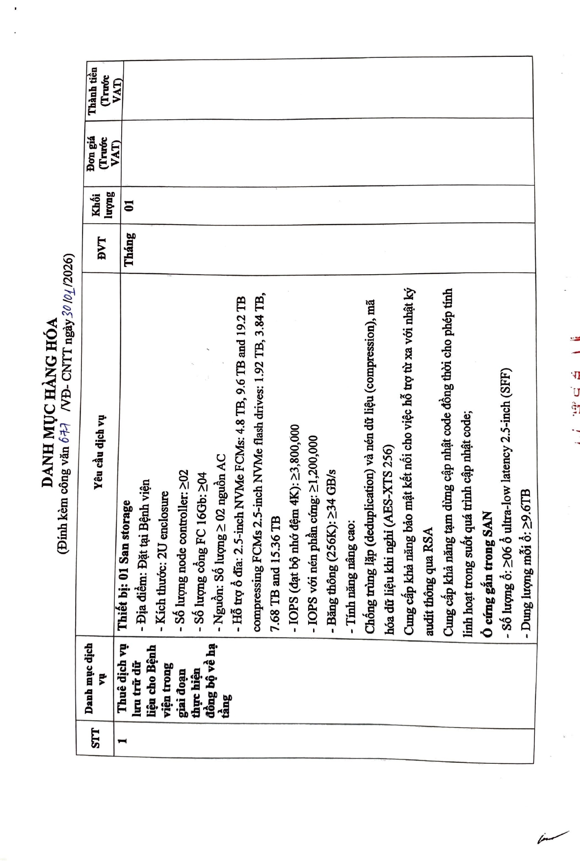 Bệnh viện Hữu nghị Việt Đức yêu cầu báo giá thuê dịch vụ lưu trữ dữ liệu cho Bệnh viện trong giai đoạn thực hiện đồng bộ về hạ tầng