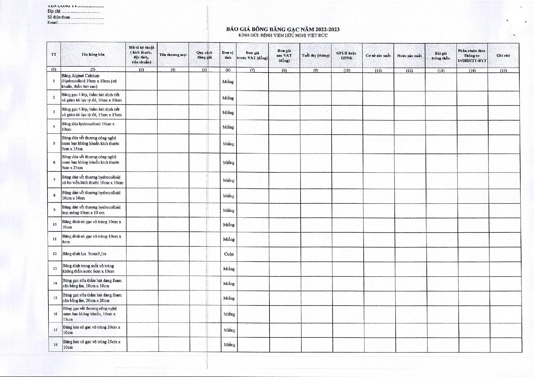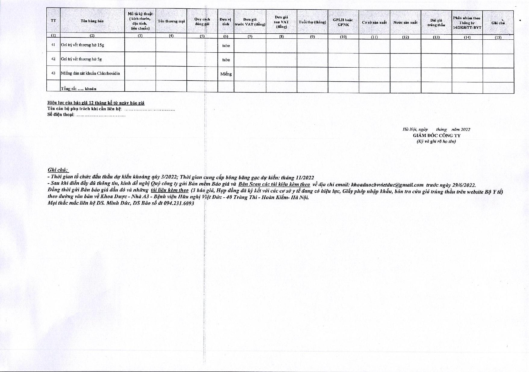 Bệnh viện Việt Đức báo giá bông băng gạc chăm sóc vết thương năm 2022 – 2023