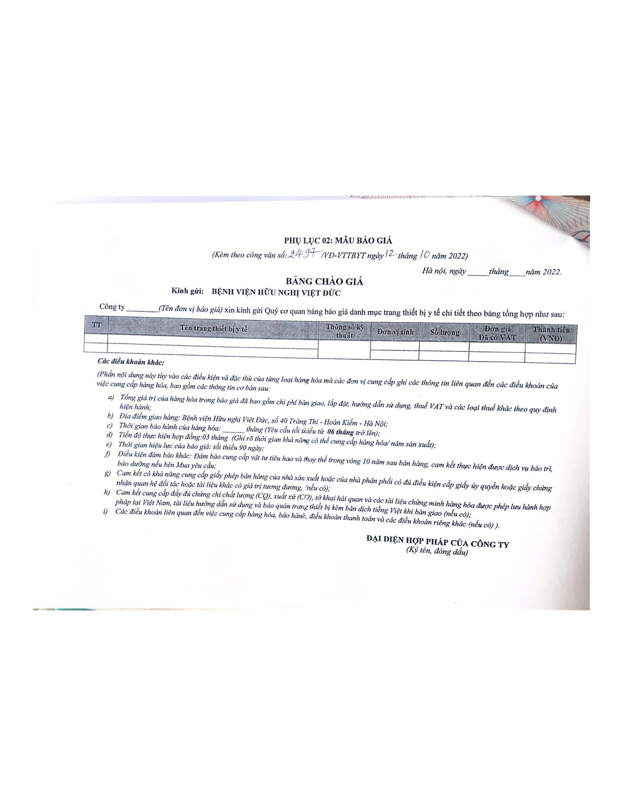 Bệnh viện Hữu nghị Việt Đức mời chào báo giá thiết bị y tế
