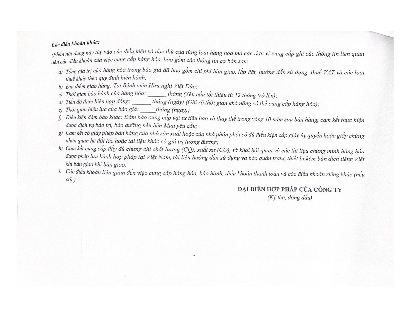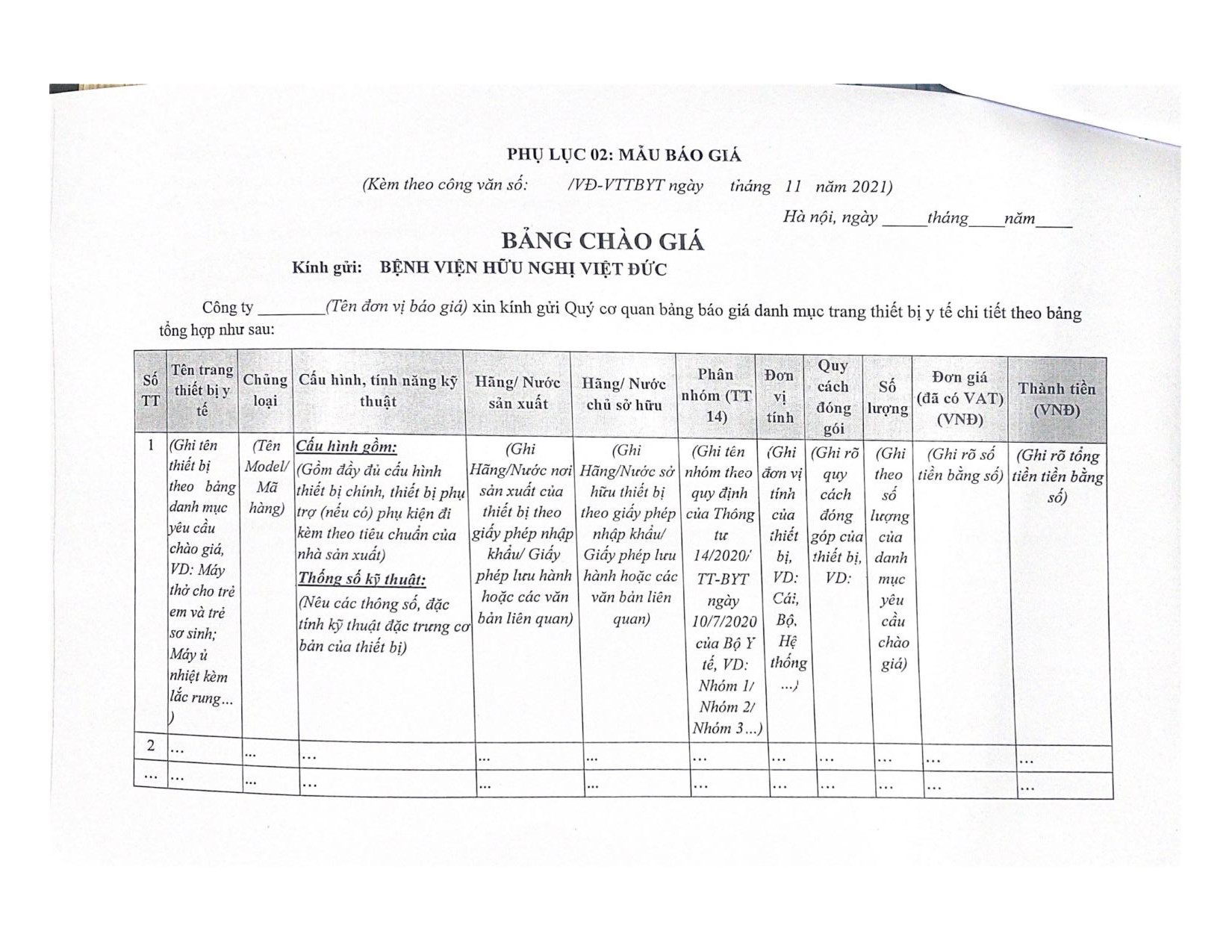 Bệnh viện Việt Đức mời chào giá các mặt hàng trang thiết bị y tế
