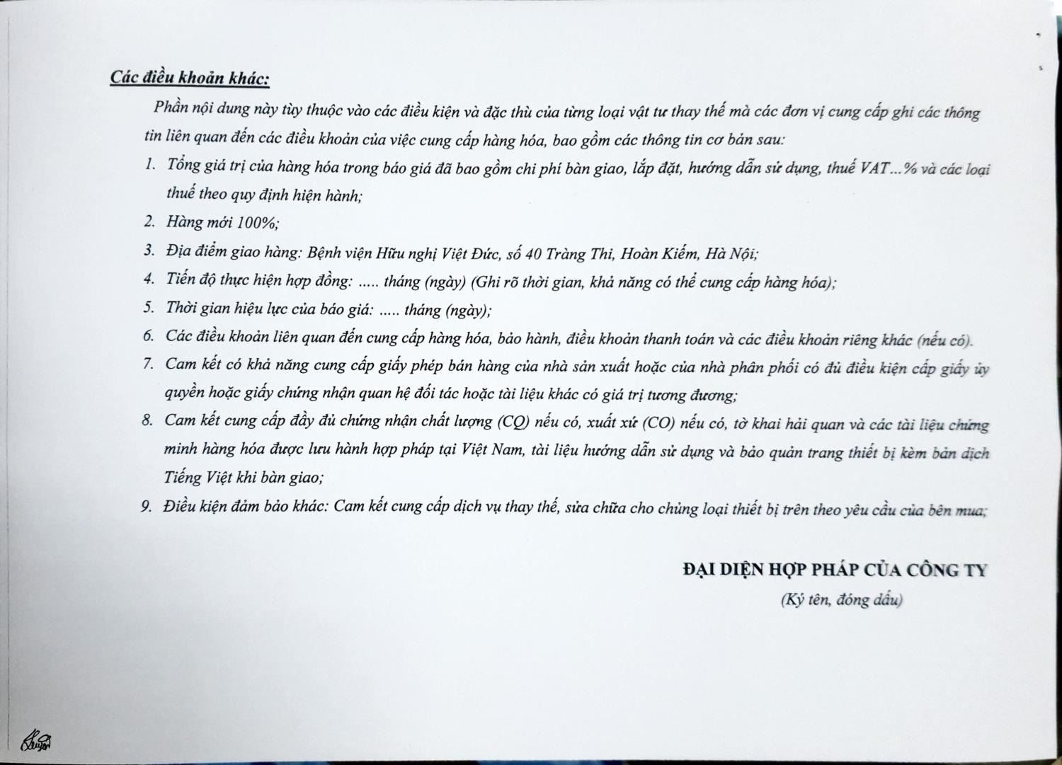 Bệnh viện Hữu nghị Việt Đức mời chào báo giá thiết bị y tế