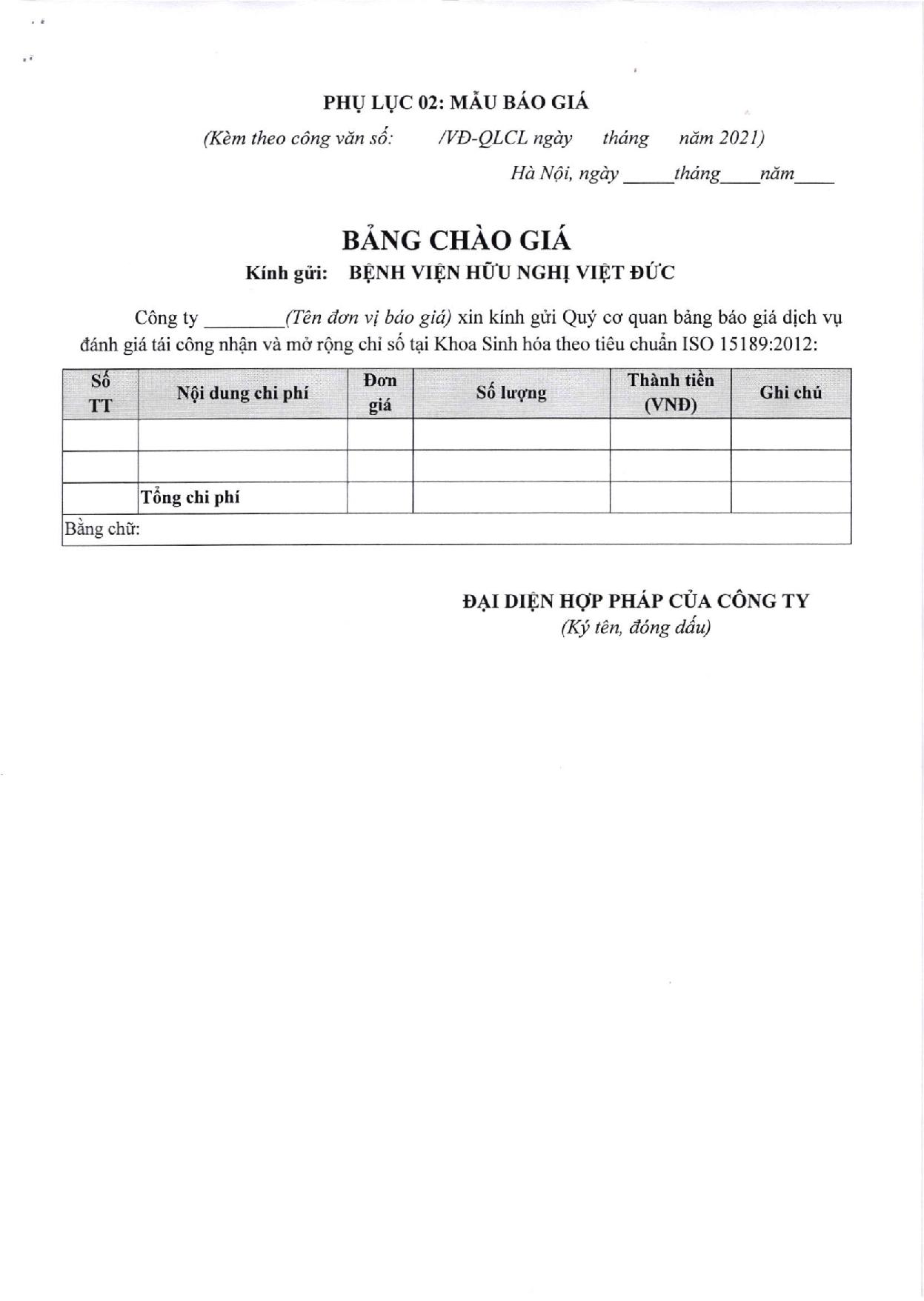 Bệnh viện Việt Đức mời chào giá tái công nhận và mở rộng chỉ số tại Khoa Sinh hóa theo tiêu chuẩn ISO 15189